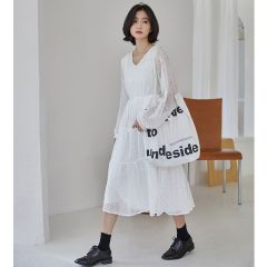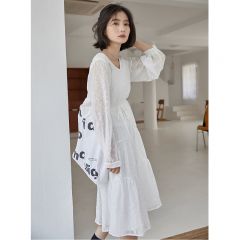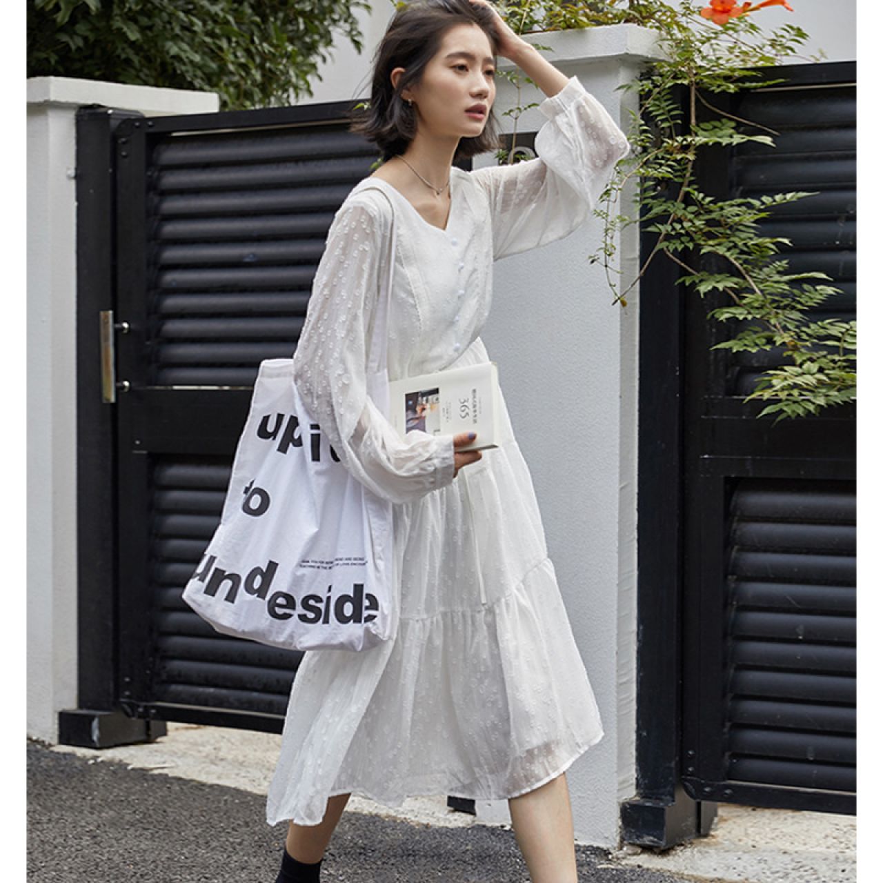 2020秋季新款洋气中长款过膝连衣裙韩版V领长袖高腰显瘦超仙裙子
