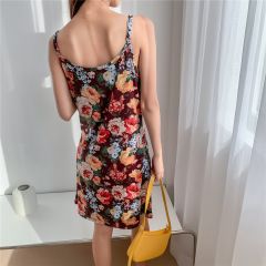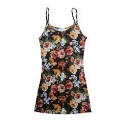 [千春]吊带连衣裙韩版无袖中长款花朵满印裙子修身显瘦A字裙批发