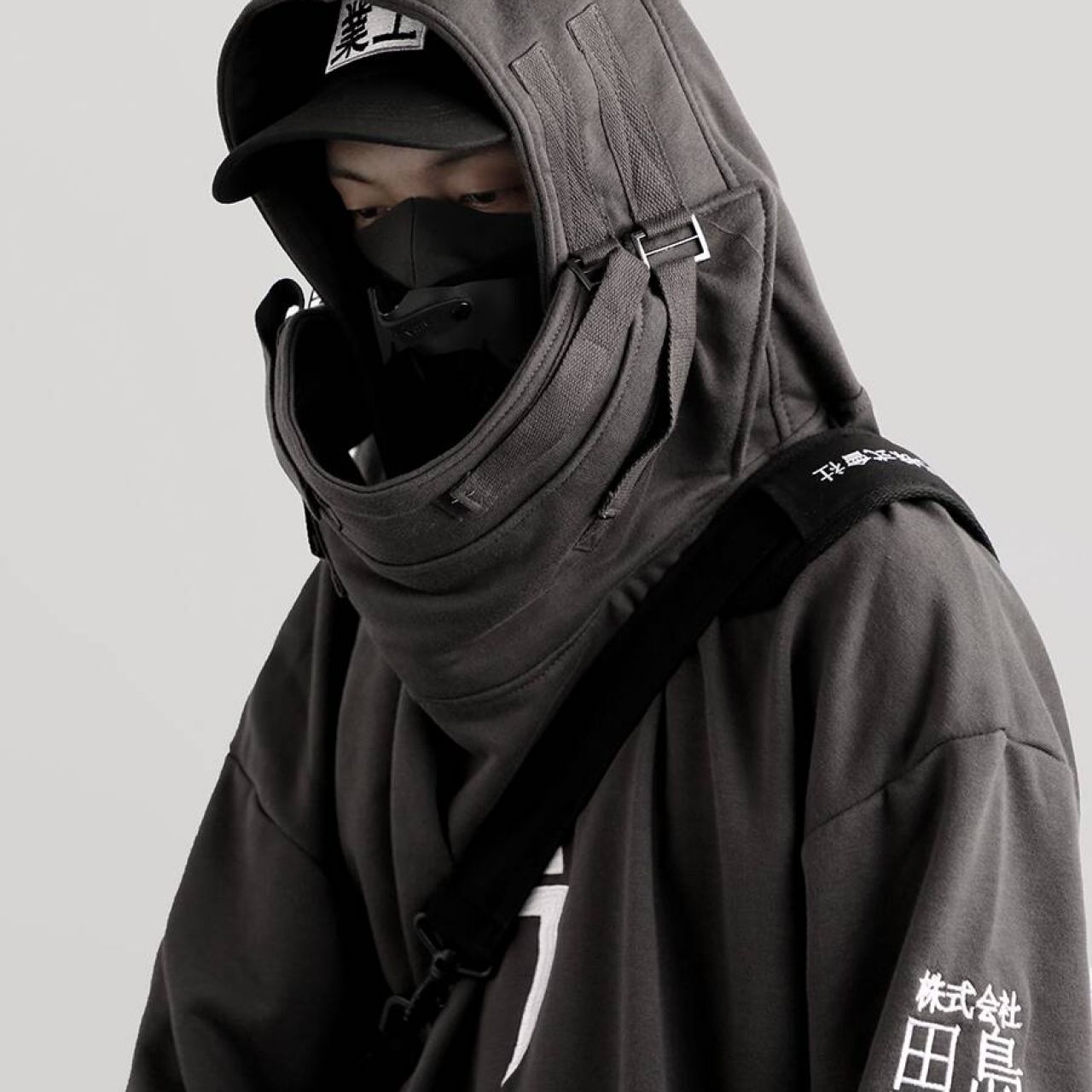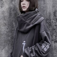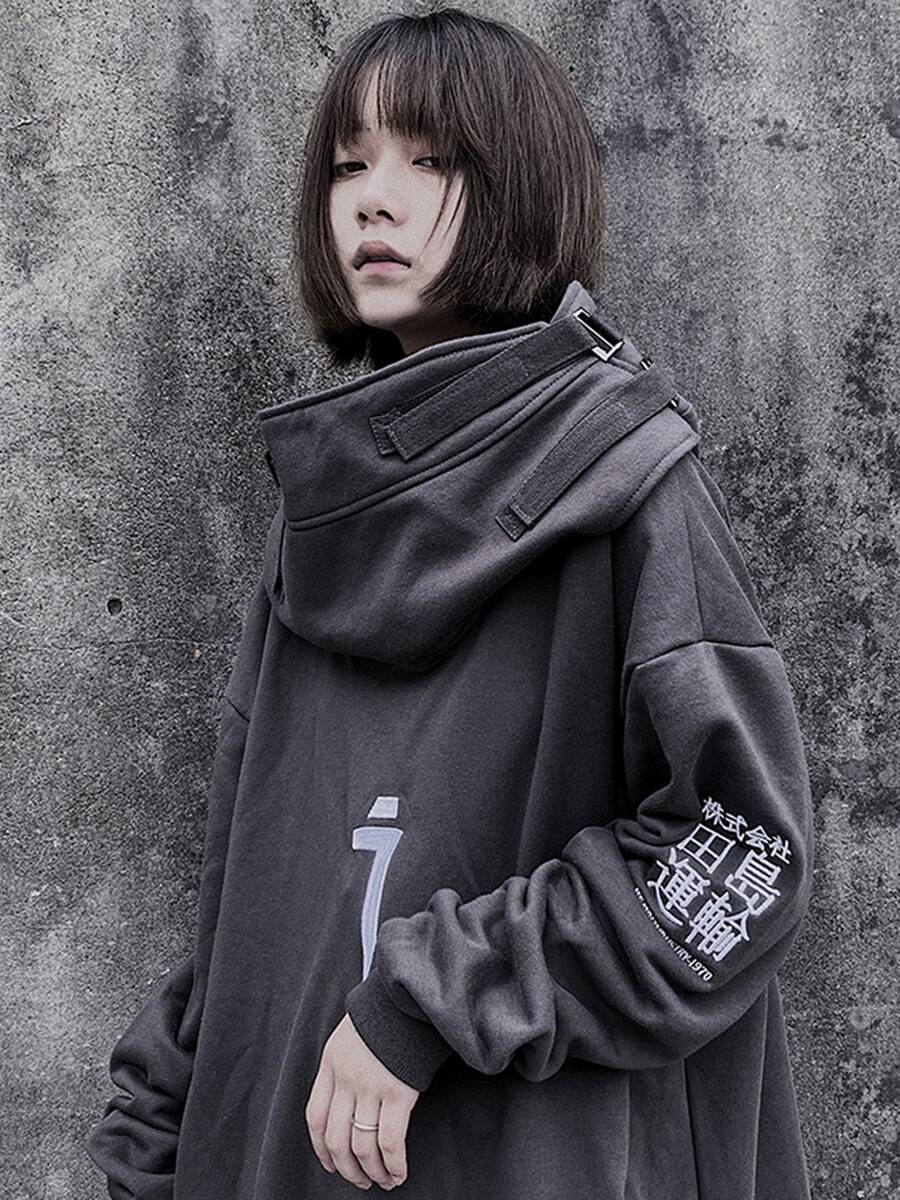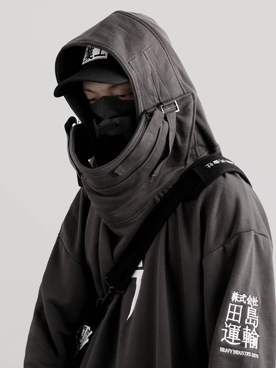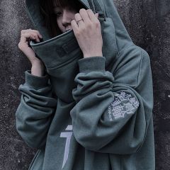 丧系吉业重工国潮秋冬季男女鱼嘴帽卫衣宽松嘻哈加绒连帽套头外套