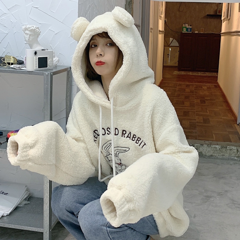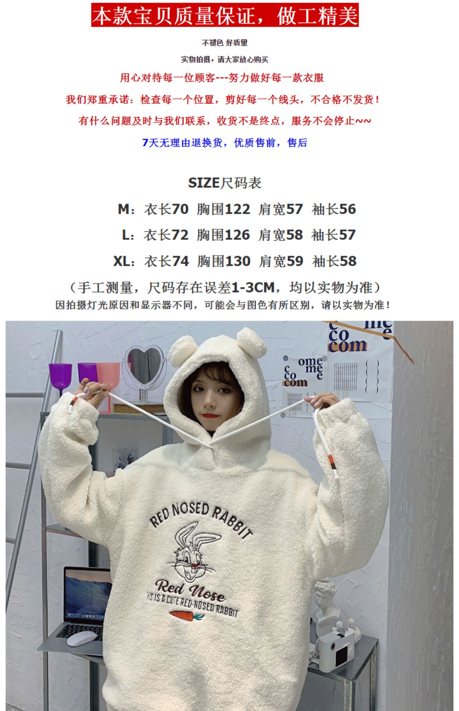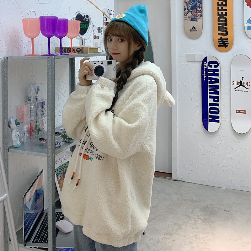 兔子耳朵羊羔毛卫衣女秋冬ins宽松韩版bf慵懒风加绒加厚可爱外套