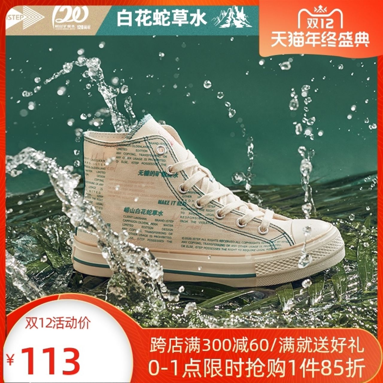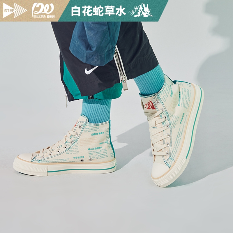 istep2020新品高帮帆布鞋崂山白花蛇草水联名款男女同款印花板鞋