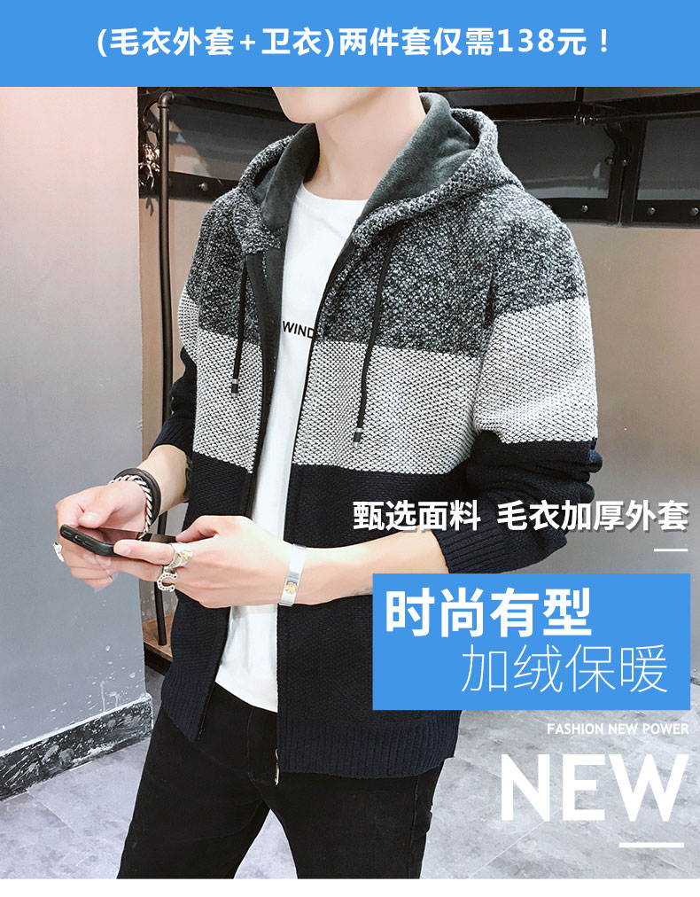 毛衣男士外套冬季韩版潮流加绒加厚款开衫秋装上衣男装衣服针织衫