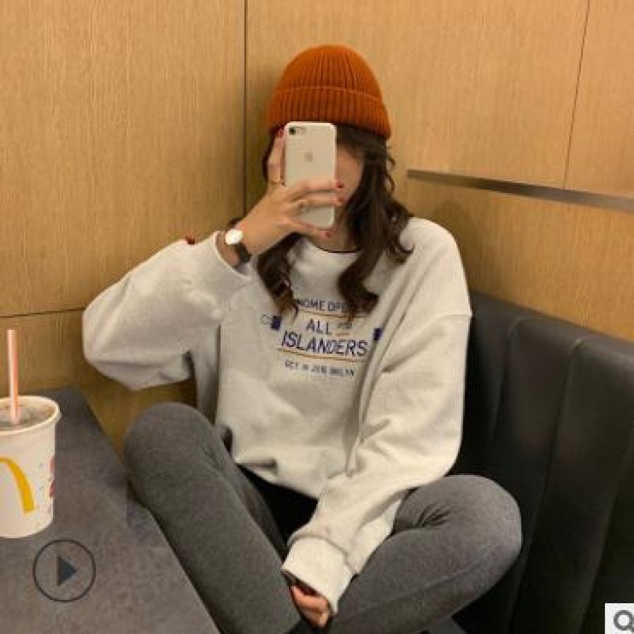 落肩袖字母印花卫衣女2020秋季新款韩版宽松休闲上衣W81729