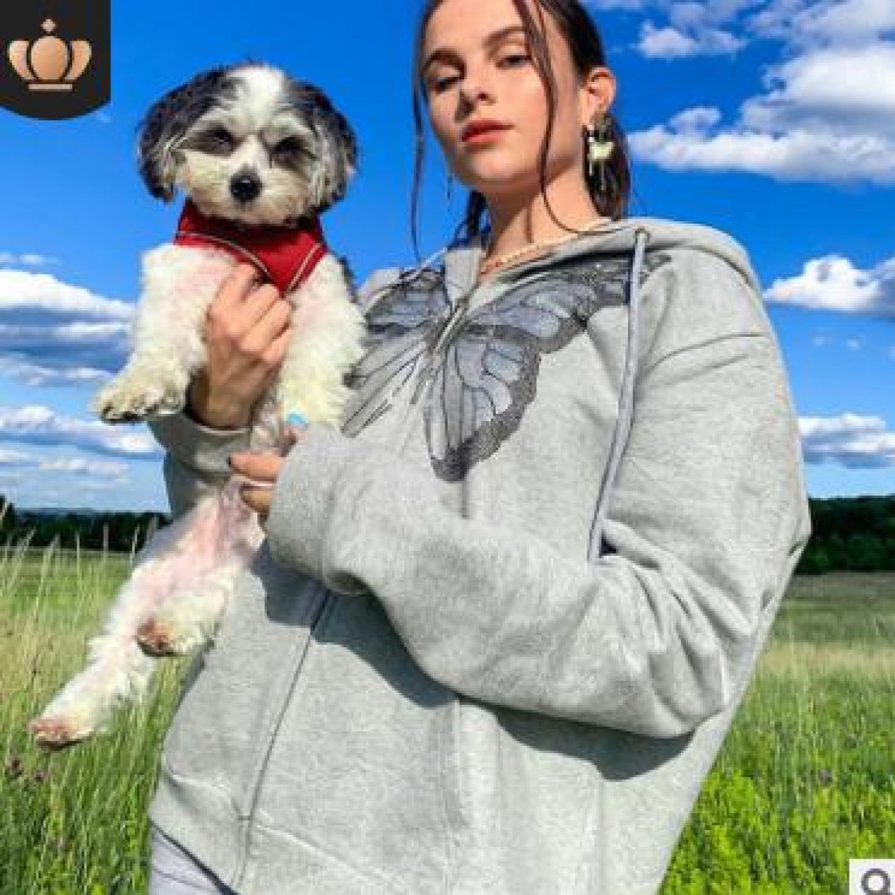 欧美爆品时尚蝴蝶印花长袖连帽卫衣2020秋冬女装百搭休闲上衣批发