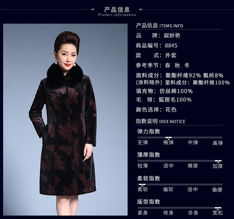 宸妙艳中老年女装2020冬季新款棉衣女外套 大码老年人棉衣批发