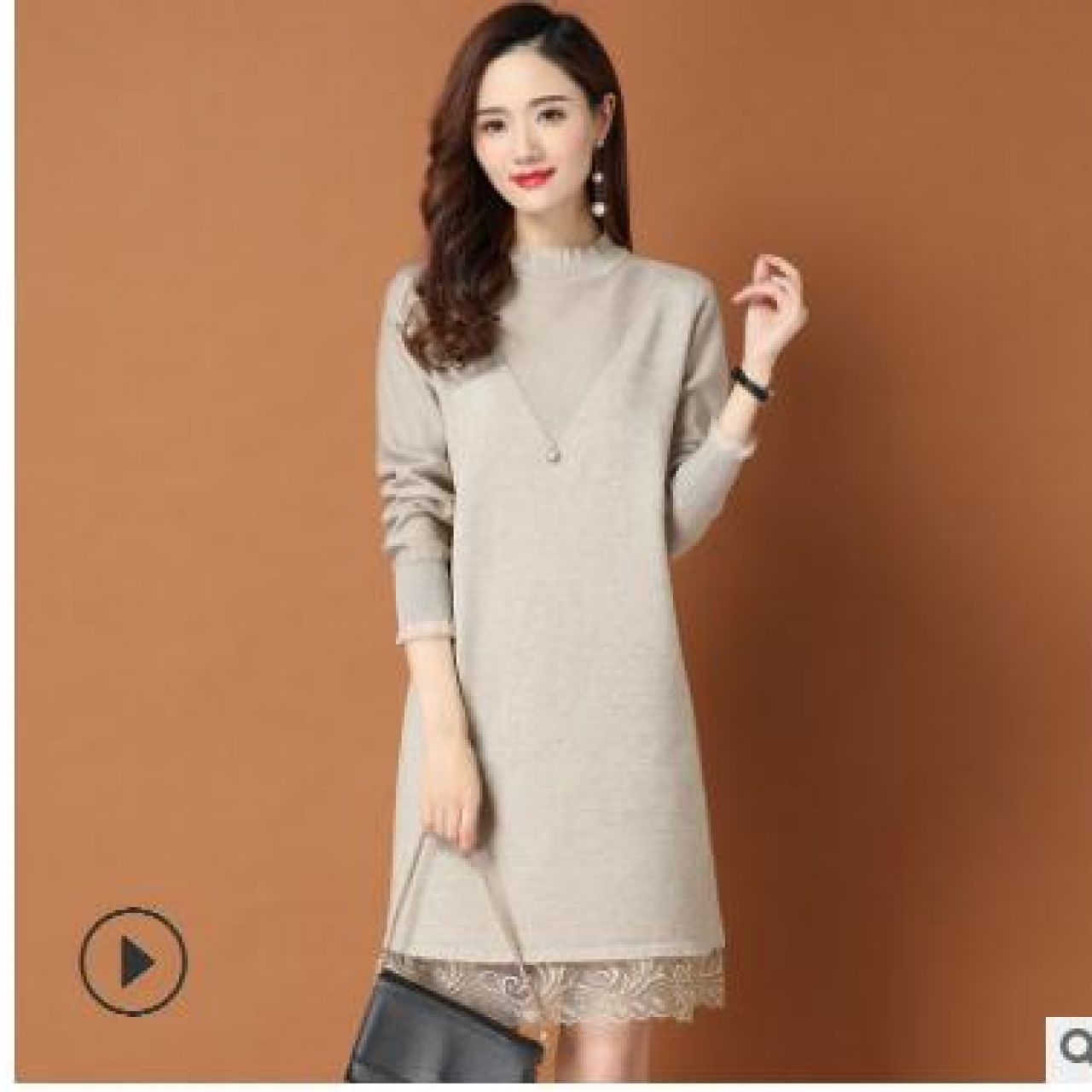 半高领针织连衣裙冬新款配大衣毛衣裙中长款加绒加厚内搭打底衫女