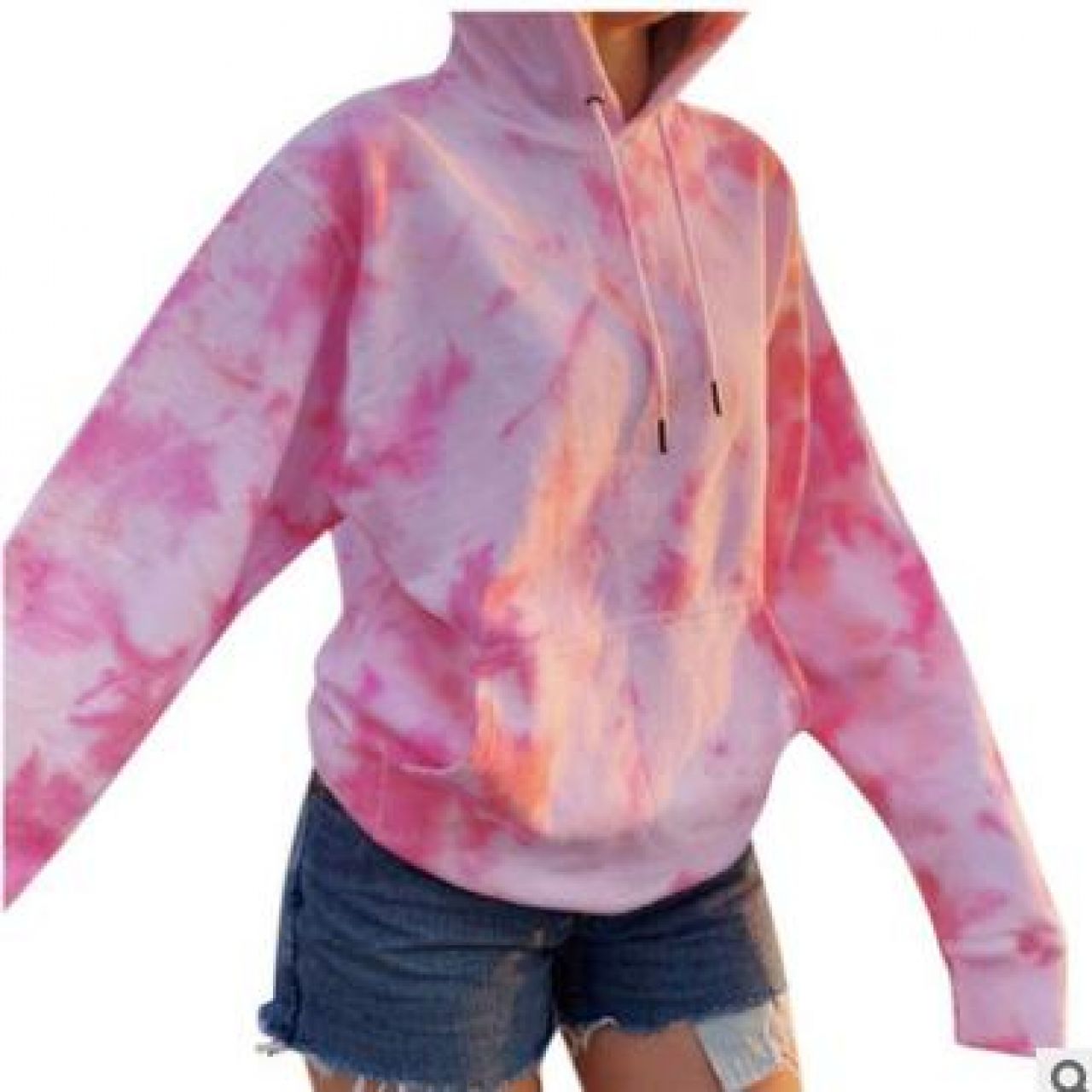 2020秋欧美街头外贸女装新款宽松连帽扎染印花休闲大卫衣外套上衣