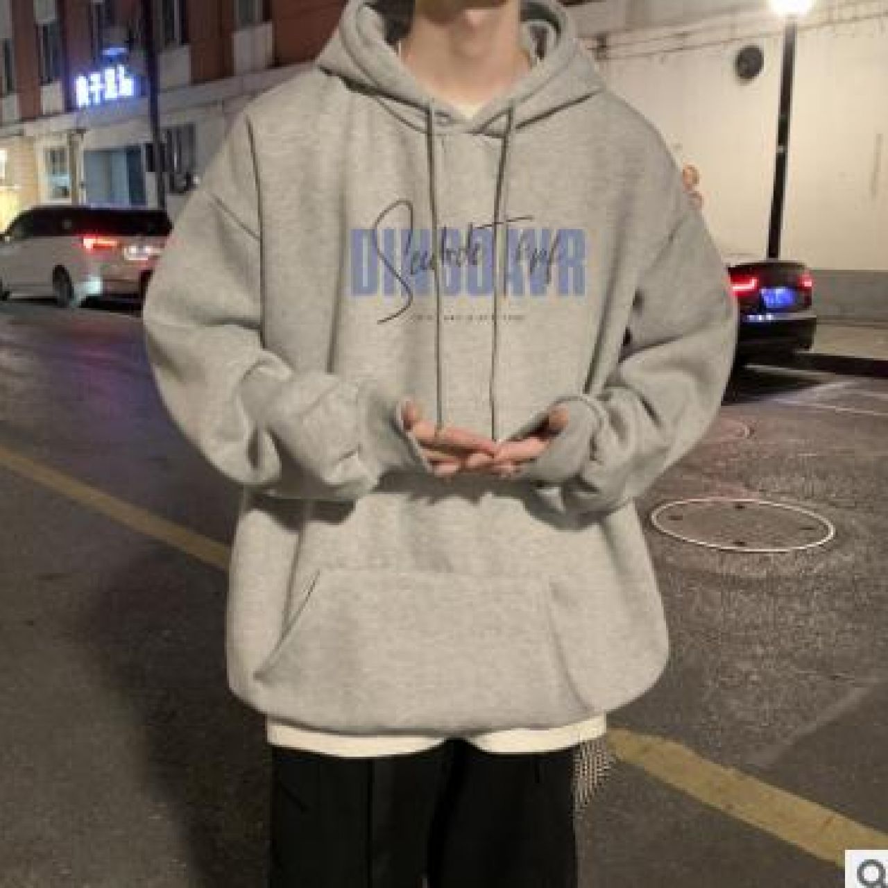 2020秋冬字母印花宽松连帽加绒卫衣大码帽衫学生潮流休闲外套上衣