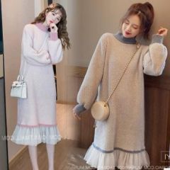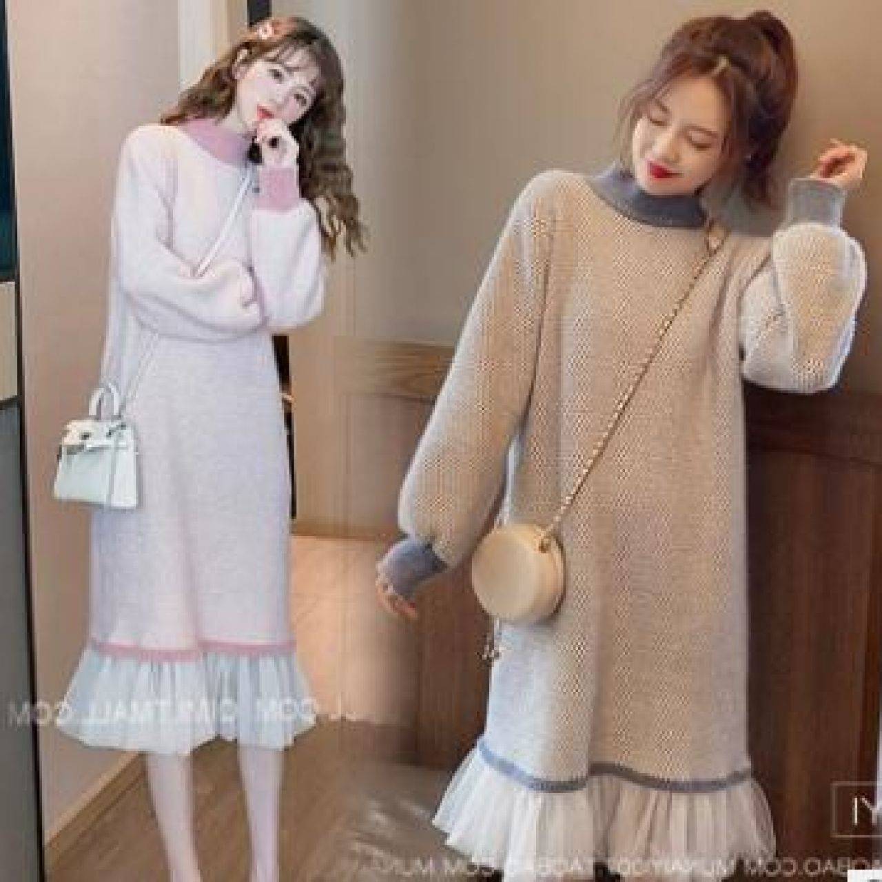 配大衣内搭打底毛衣茶歇法式连衣裙子设计感小众过膝中长款女秋冬