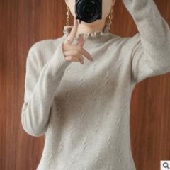 木耳领羊绒衫春秋半高圆领女毛衣纯色套头修身打底长袖羊毛针织衫