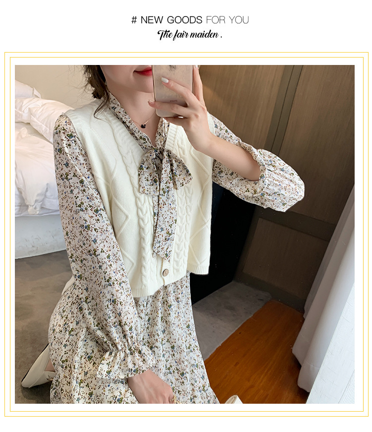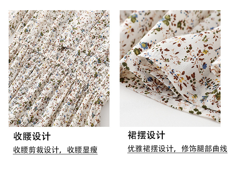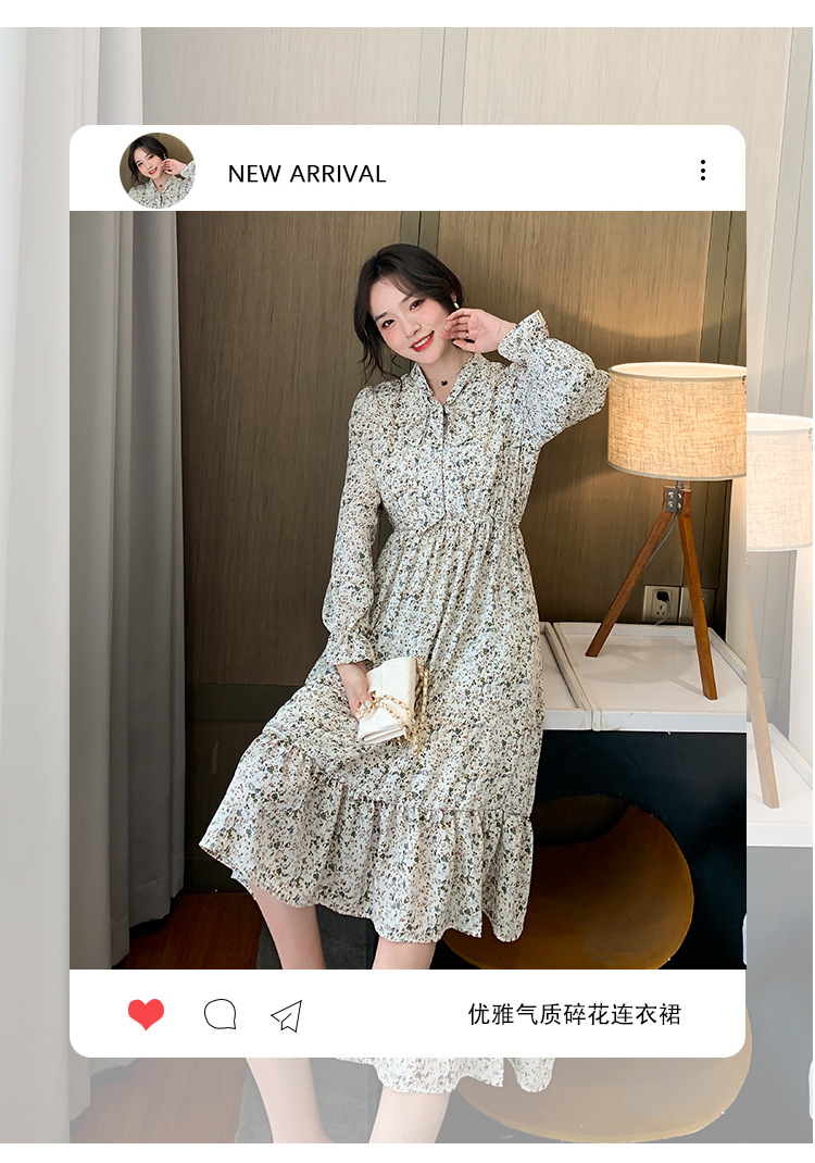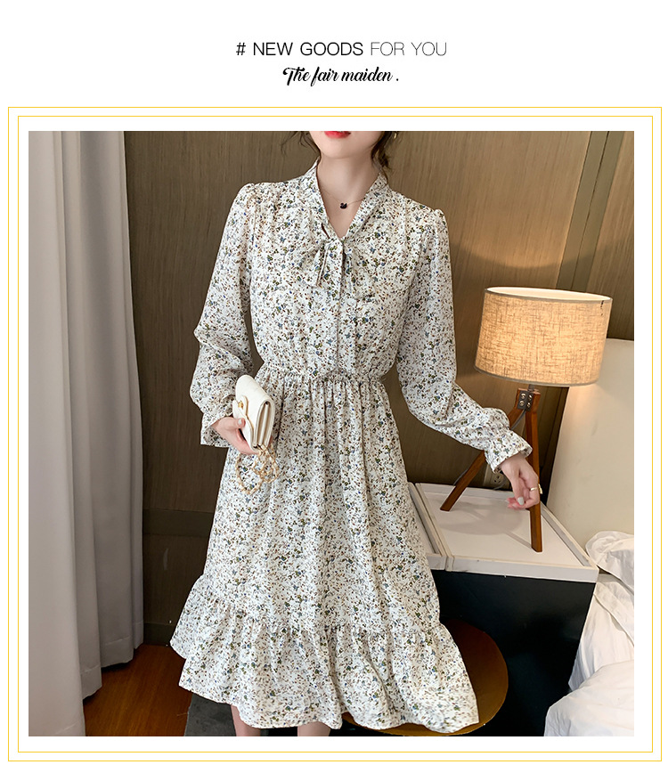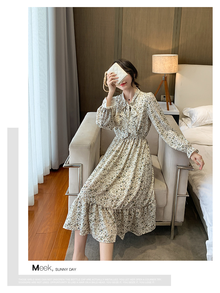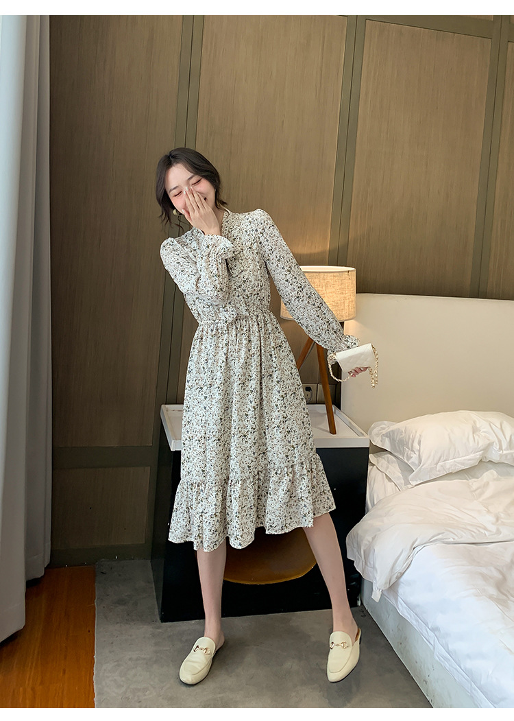 实拍优质现货韩版碎花雪纺连衣裙女长袖春秋中长款收腰显瘦打底裙