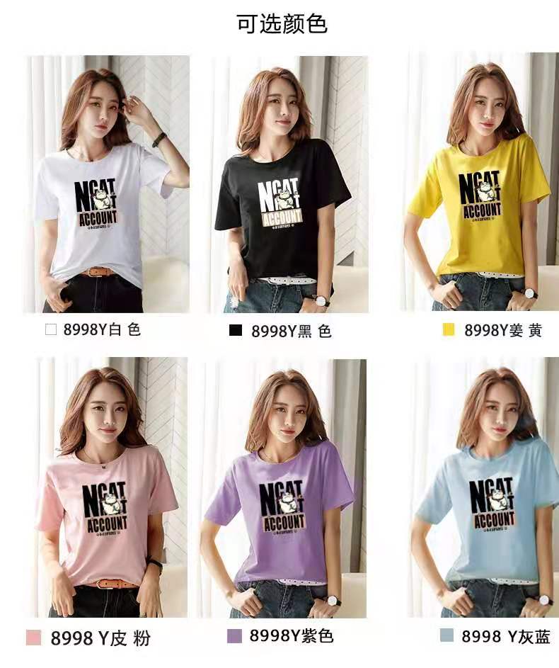 2020夏装新款纯棉短袖T恤女宽松大码胖mm纯色印花半袖上衣t恤女