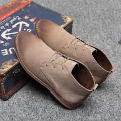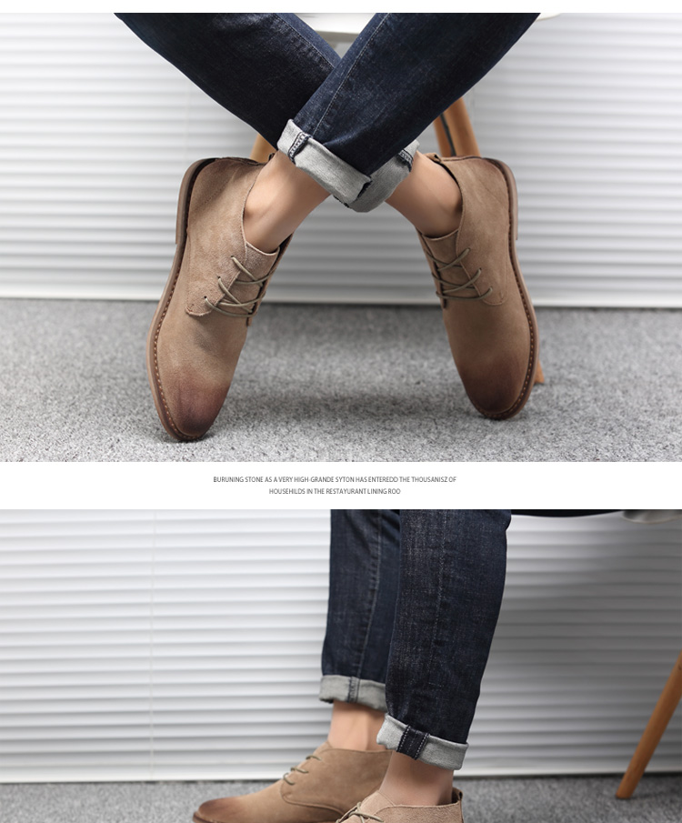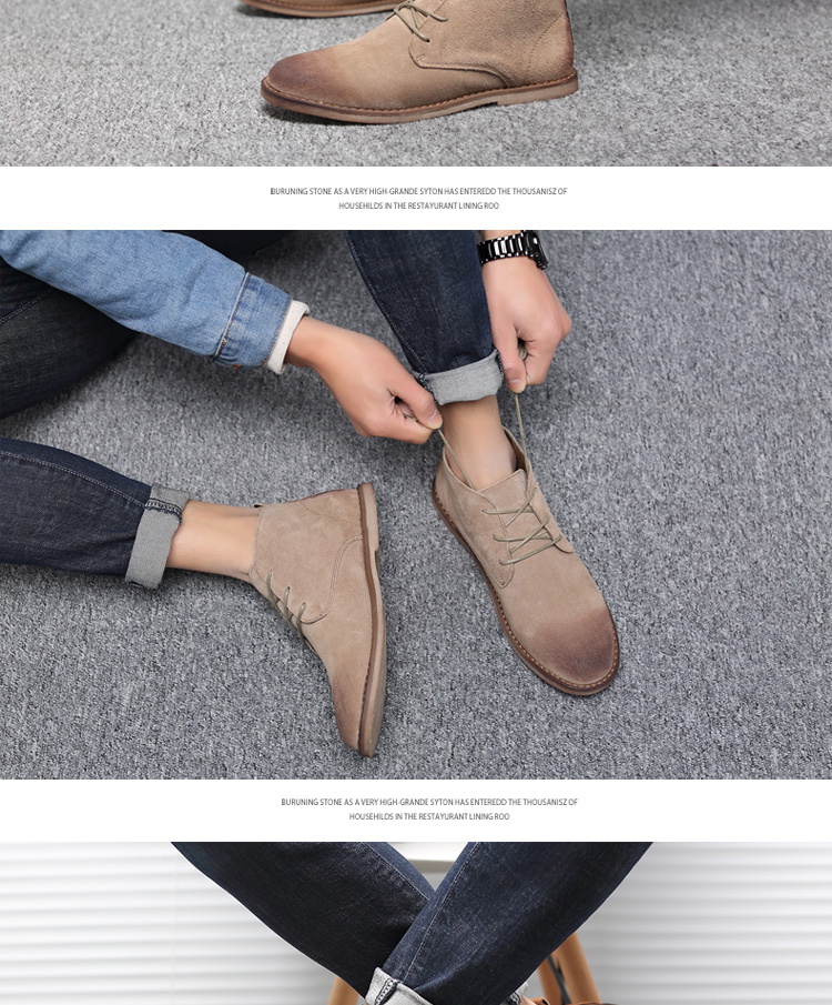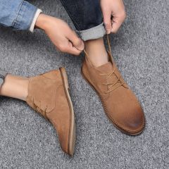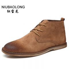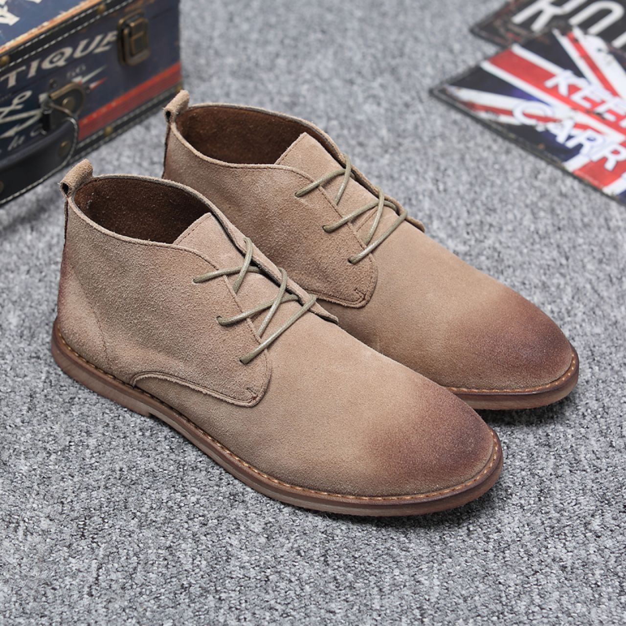 秋季马丁靴男英伦中高帮加绒工装鞋真皮磨砂反绒皮复古皮鞋沙漠靴
