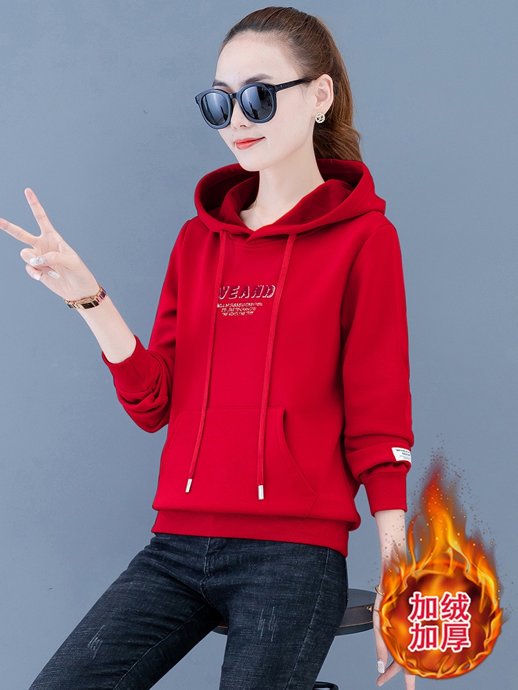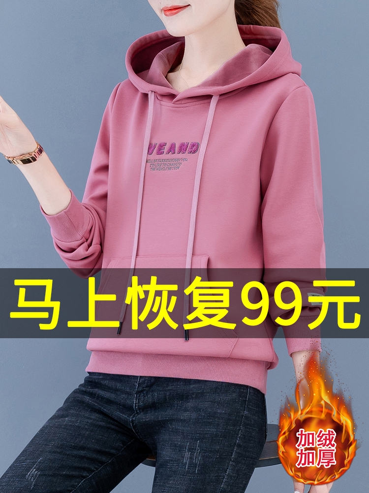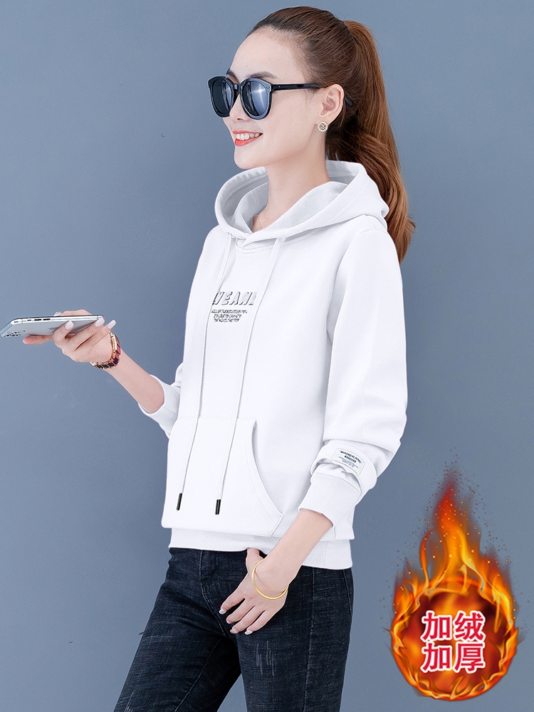 加绒连帽卫衣女秋冬加厚宽松韩版短款洋气时尚上衣服2020年新款潮