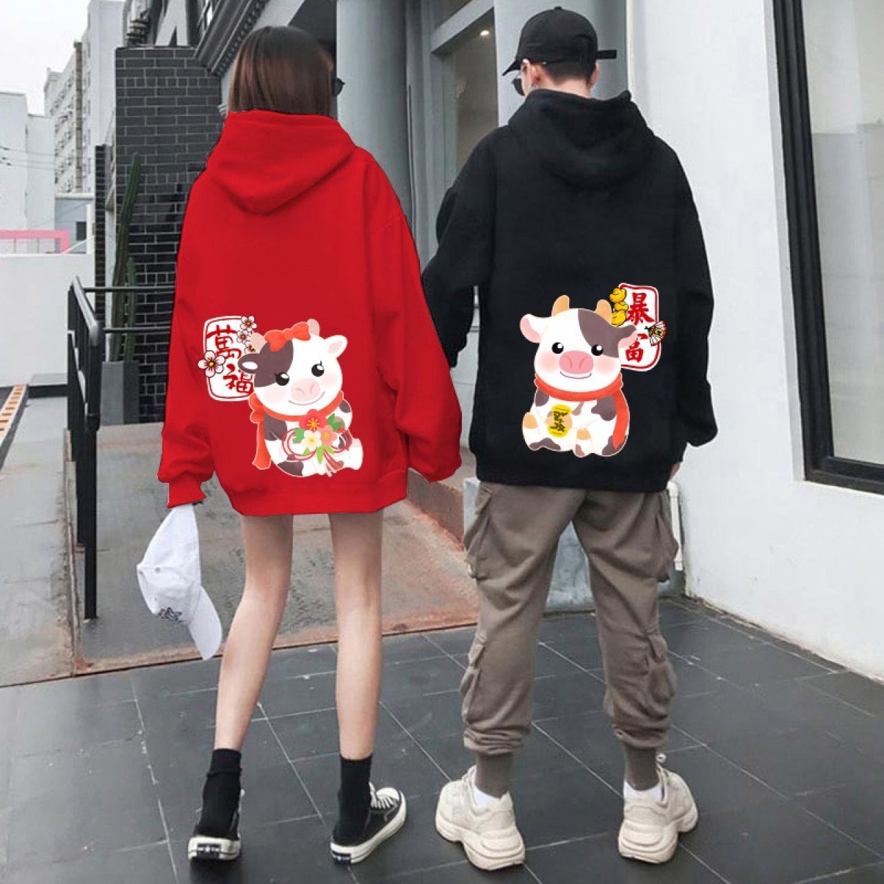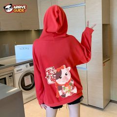 2021爆款牛年本命年衣服女秋冬装新款宽松百搭休闲加绒红色卫衣厚