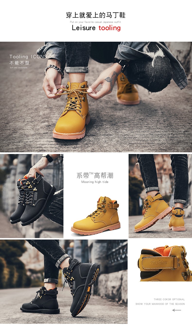 2020爆款秋冬保暖男士马丁靴英伦加绒雪地工装大黄靴潮流军靴短靴