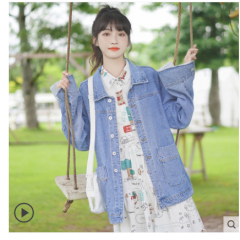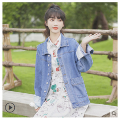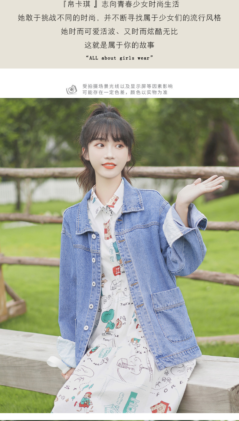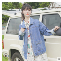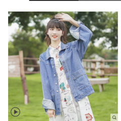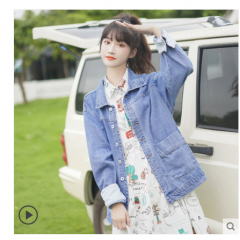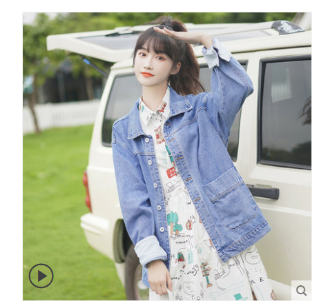 帛卡琪2020春秋新款宽松翻领夹克短款牛仔工装外套学生韩版BF上衣