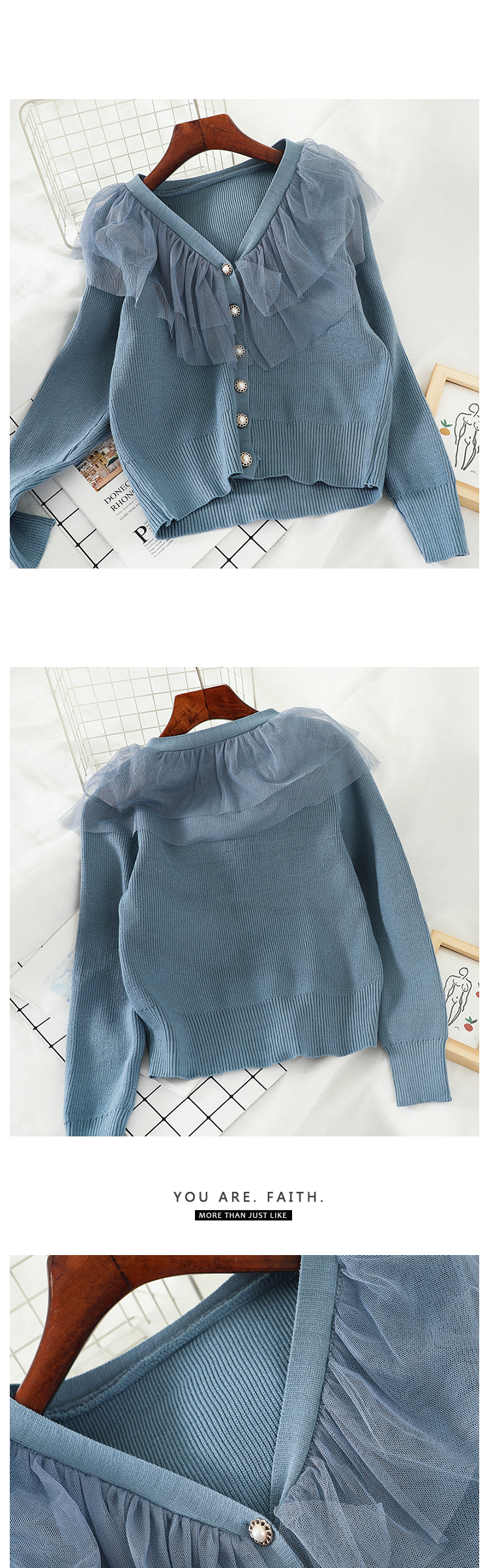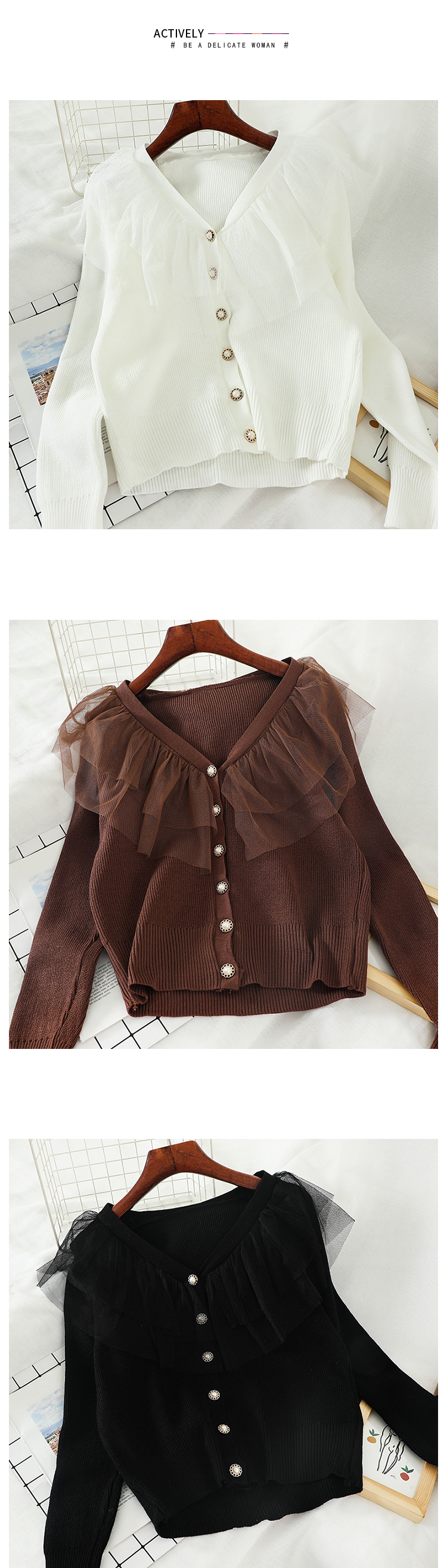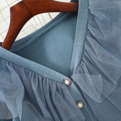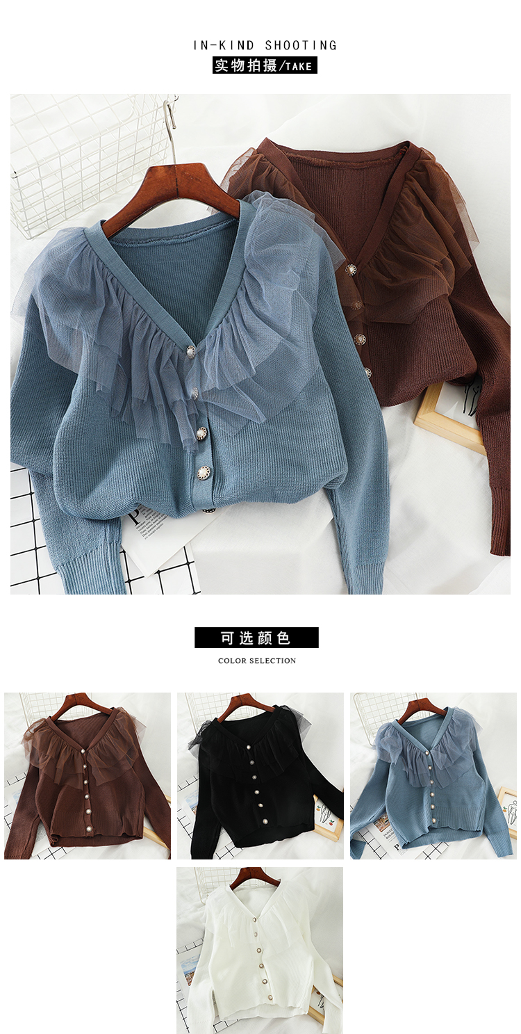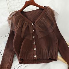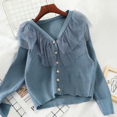 L593秋冬款百搭打底衫学生拼接网纱超仙针织衫毛衣韩系女装上衣