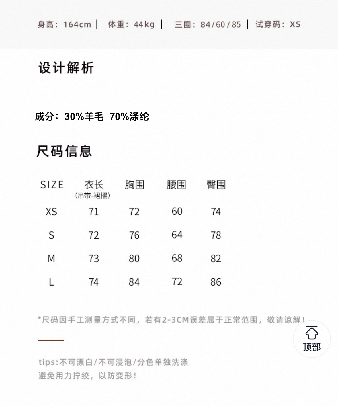• 萌萌家 自创款蕾丝羊毛内搭连衣裙 40%羊毛 短裙 米白色 s码