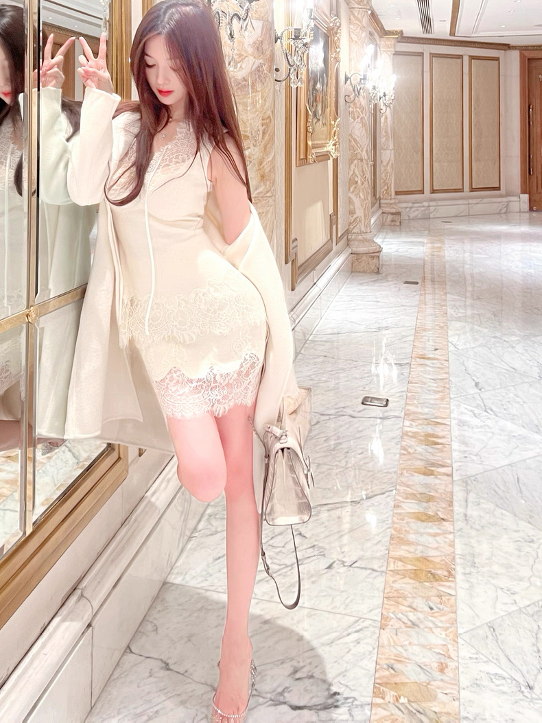 首页> 男装/ 女装/ 内衣> 女装> 蕾丝裙> 萌萌家 自创款蕾丝羊毛内搭连衣裙 40%羊毛 短裙 米白色 L码