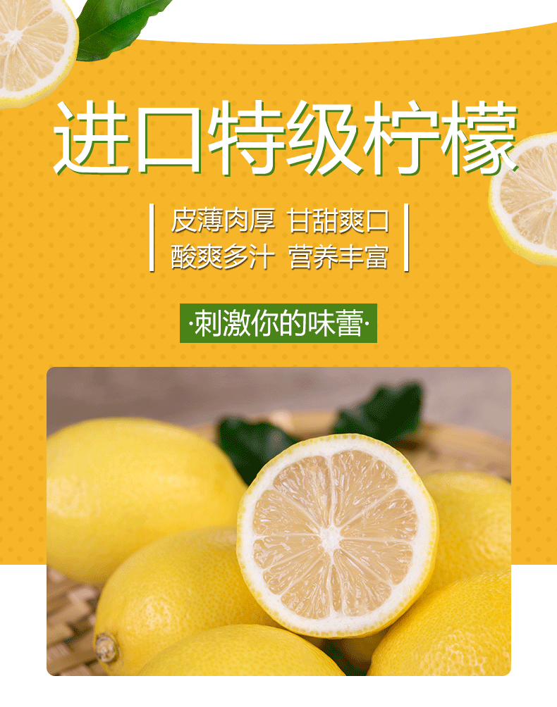 精选柠檬大果胜进口黄柠檬新奇士柠檬智利埃及南非钥匙扣柠檬皮薄