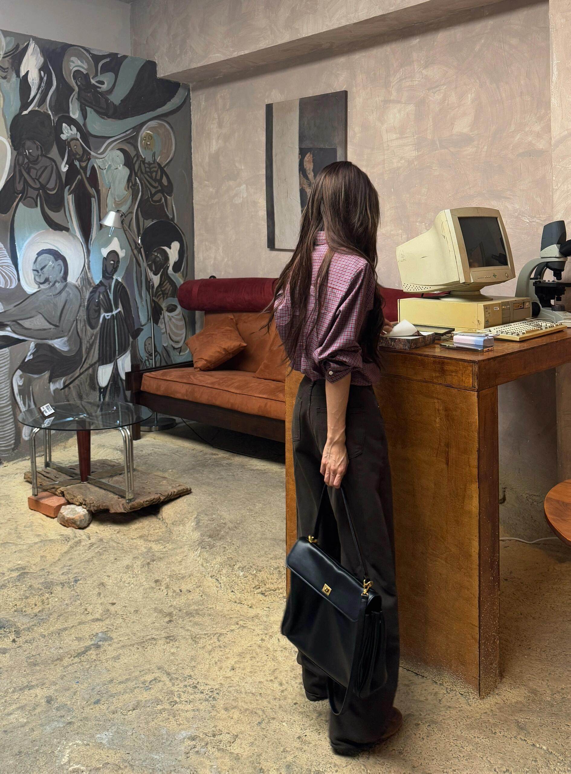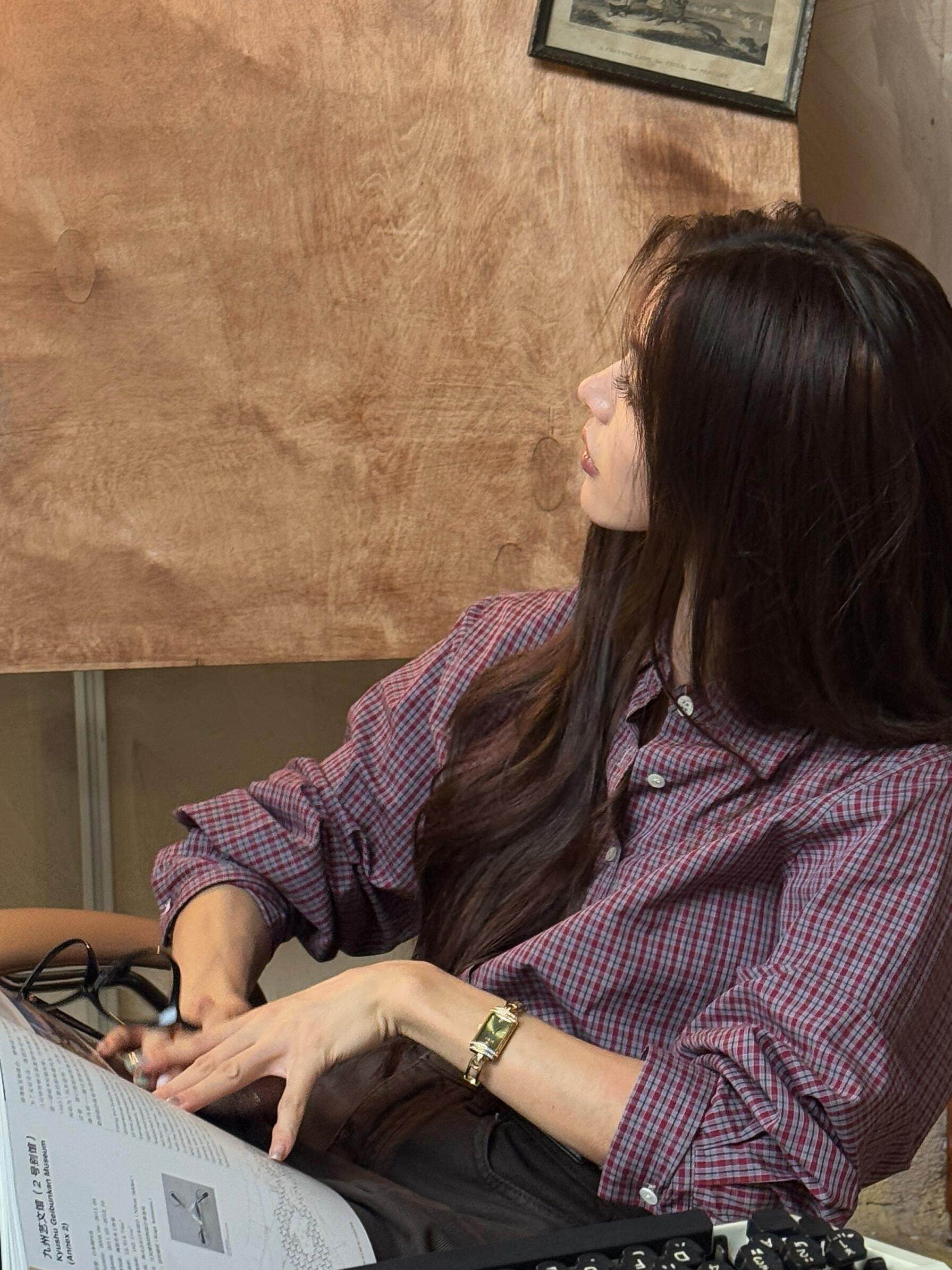 复古高级感墨绿色长袖衬衫女文艺风秋季新款森系别致叠穿上衣磨毛