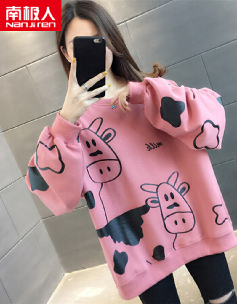 商品名称:南极人 卫衣女时尚2021春季新款卡通印花洋气薄款女装韩版百搭宽松显瘦上衣外套 GTCF02-11148-粉色 M