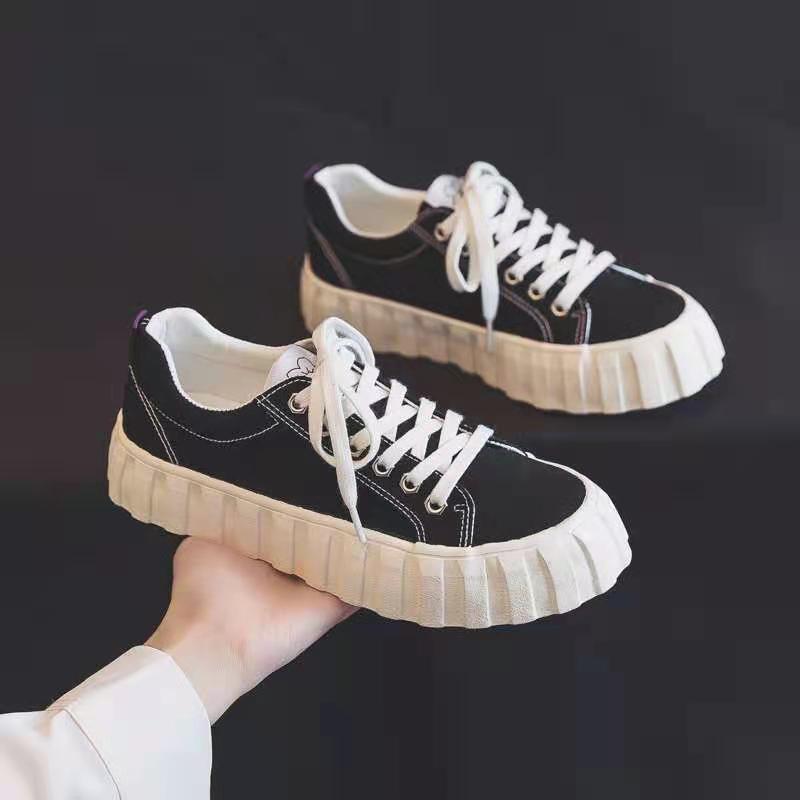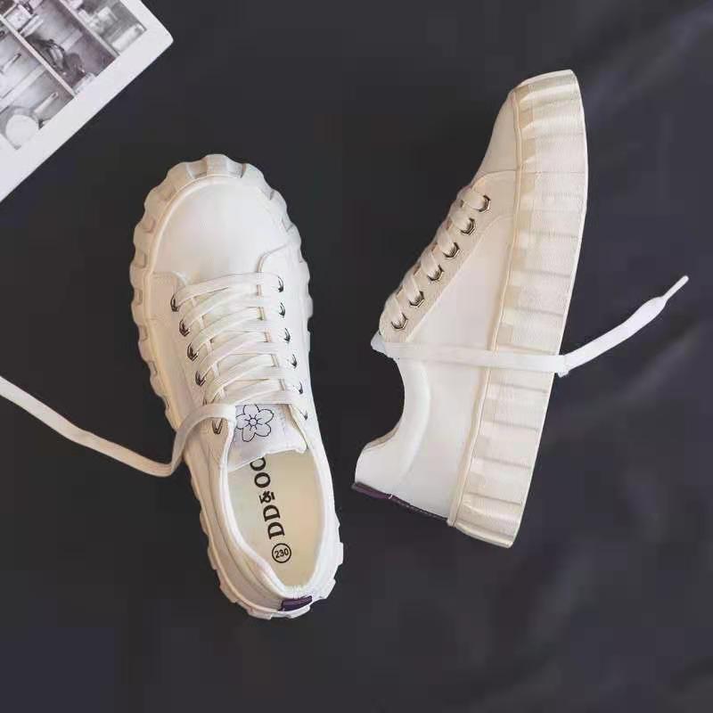 夏季薄款小众小白鞋女2021年新款春秋饼干大头帆布鞋ins街拍潮鞋
