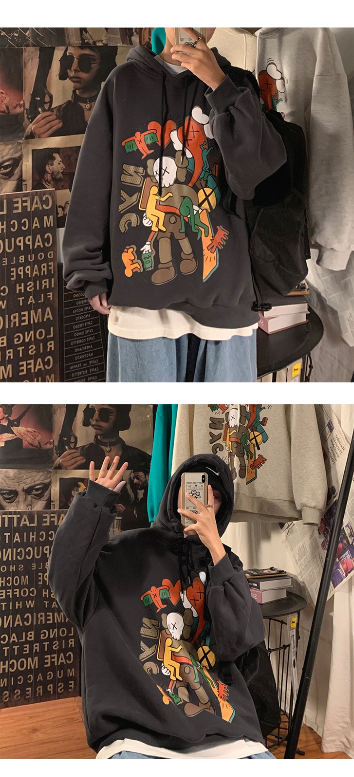 莫藏卫衣男春季新款港风潮牌连帽ins潮流宽松情侣休闲韩版外套男生帅气男装 深灰色 M