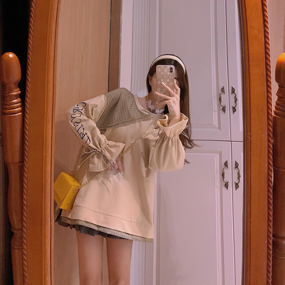 卫衣女2021新款潮ins宽松韩版洋气日系古着温柔风休闲圆领上衣秋