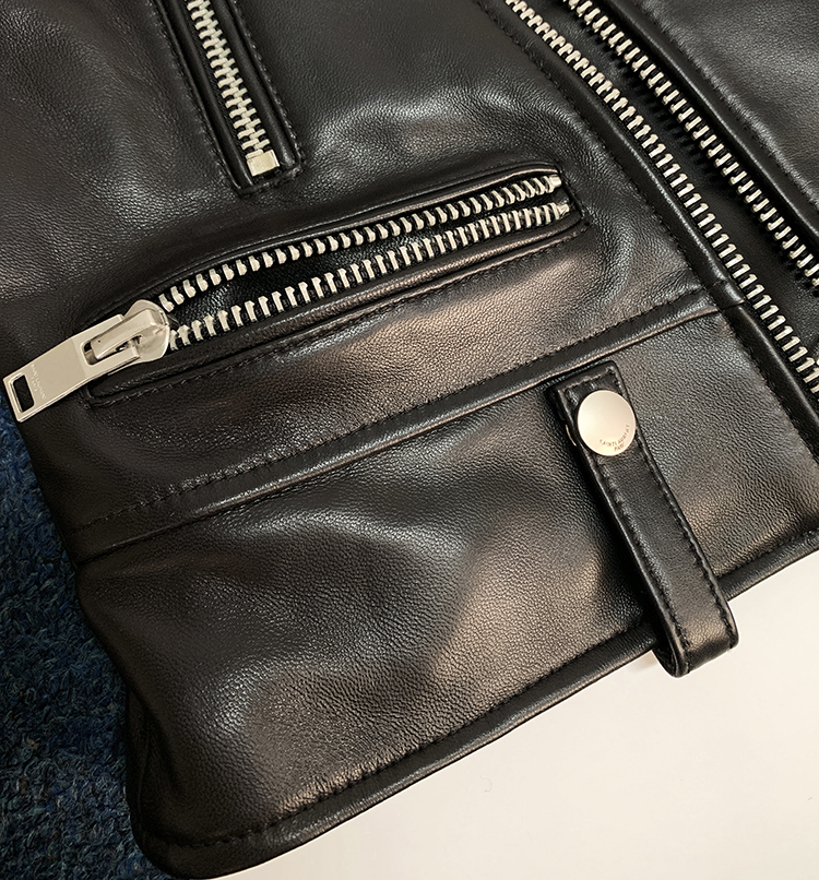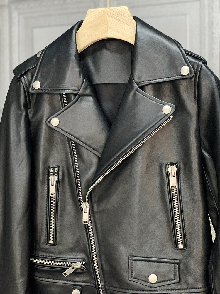 新西兰小羊皮~上身好飒~定制斜门襟个性机车款皮衣外套女17009