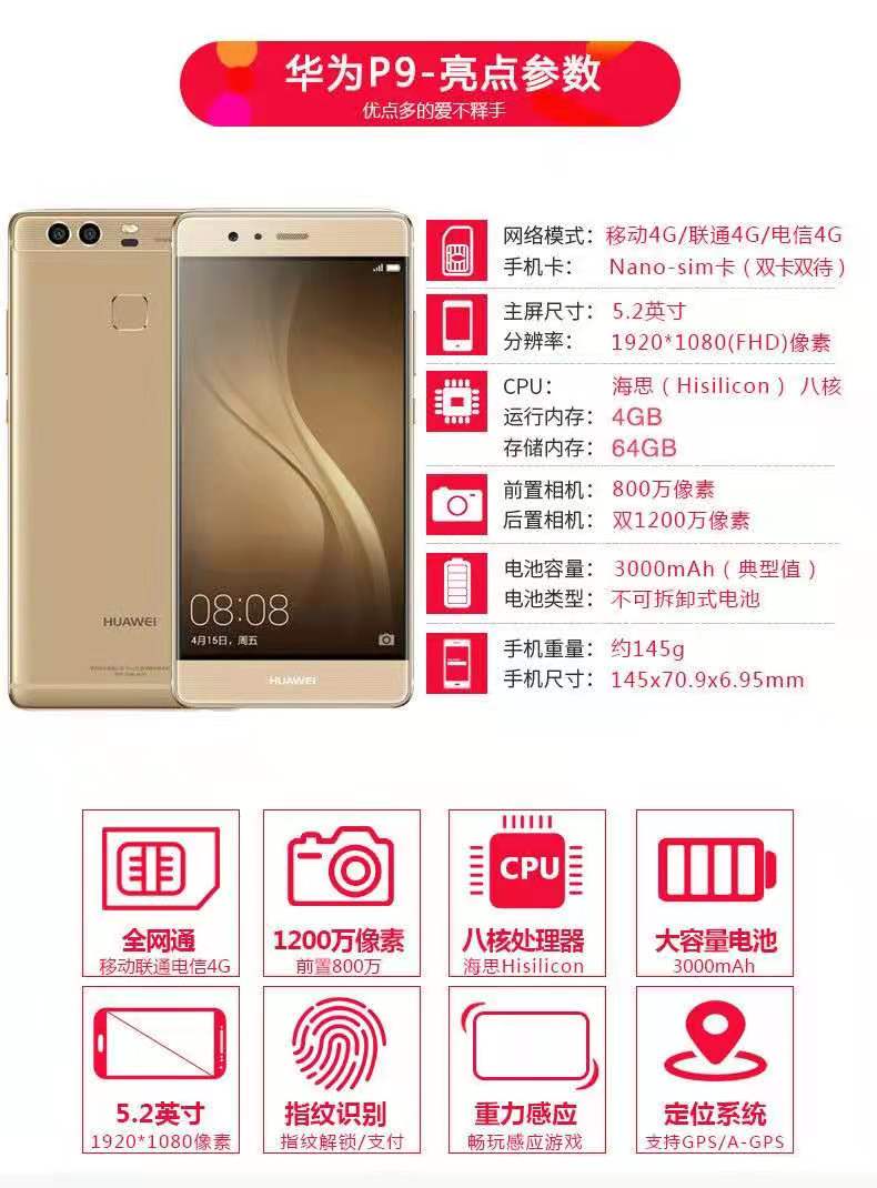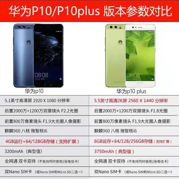Huawei/华为P10plus全网通4G指纹解锁P9双卡学生价工作室智能手机