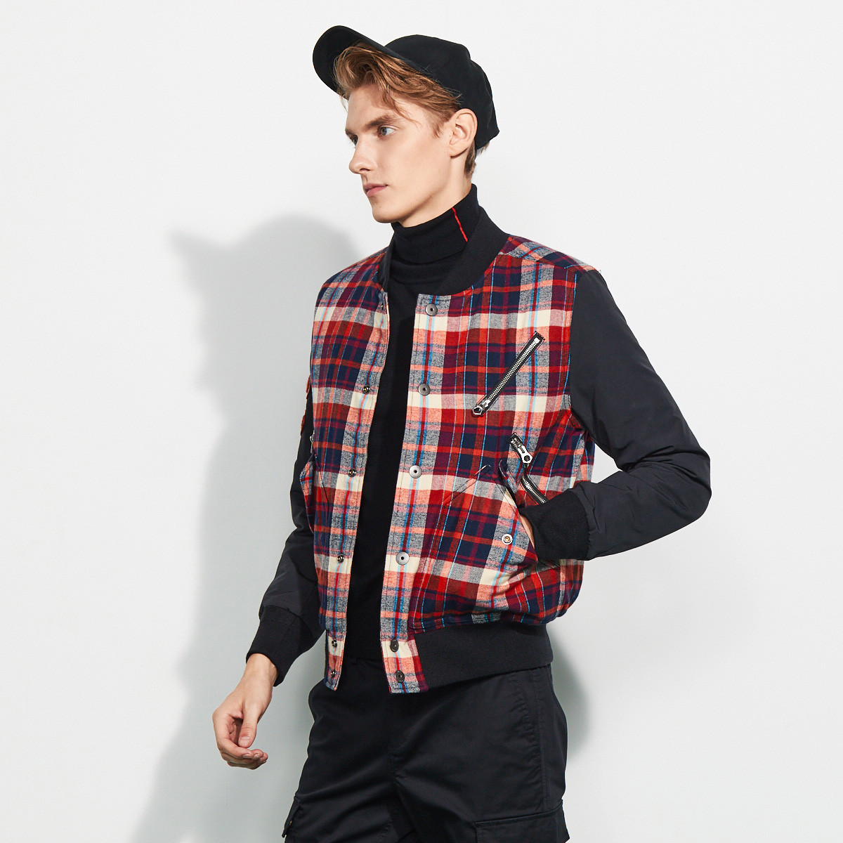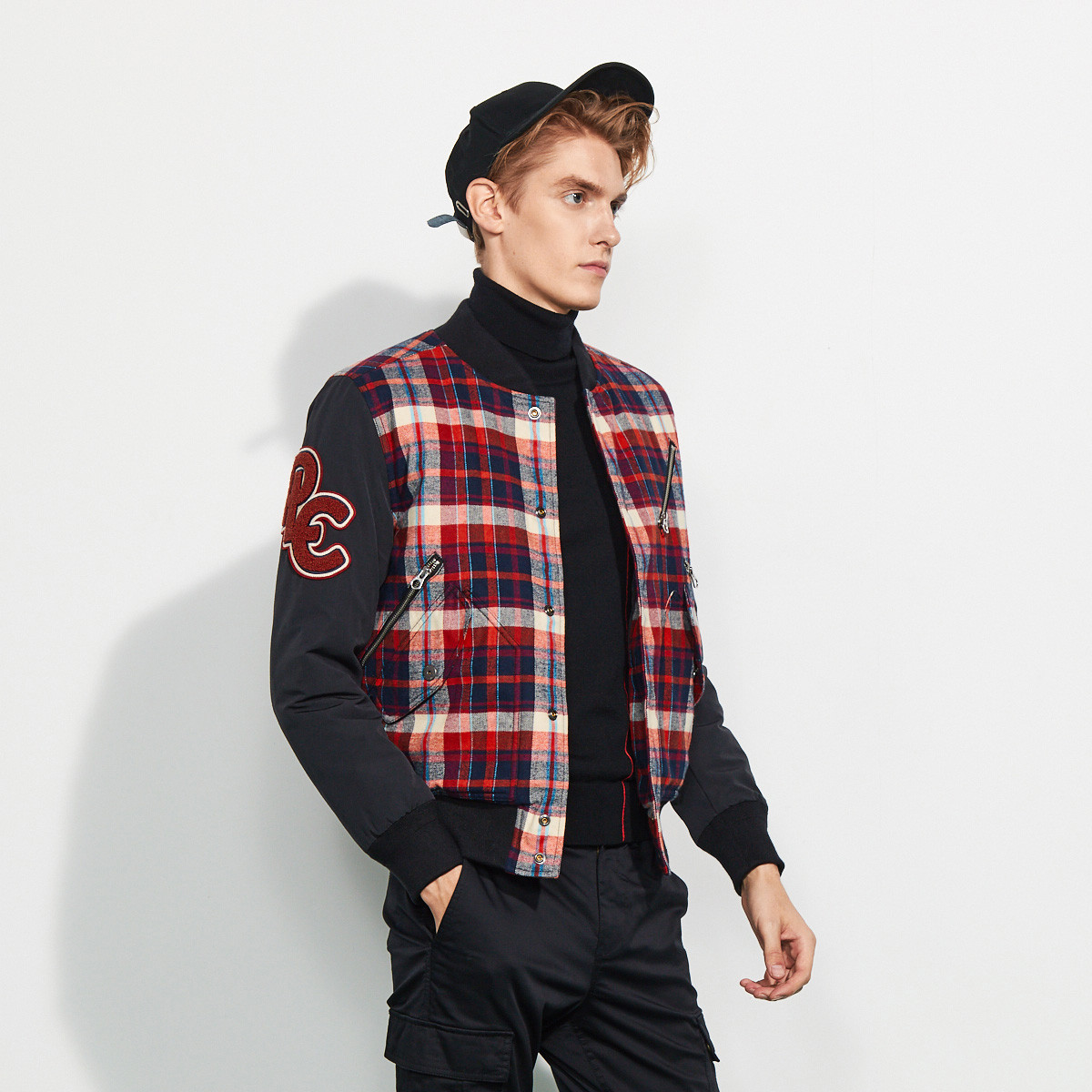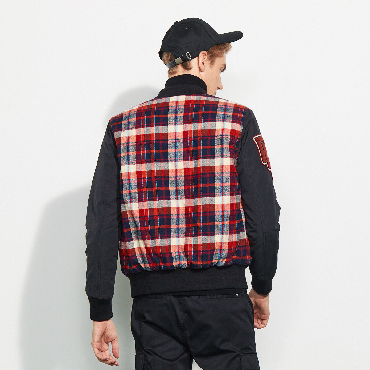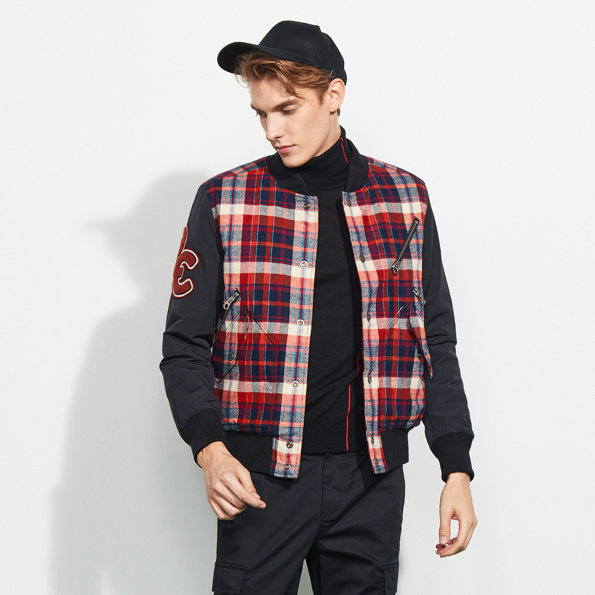 衣恋PLORY秋冬新款格纹拼接休闲时尚保暖棒球外套男 165