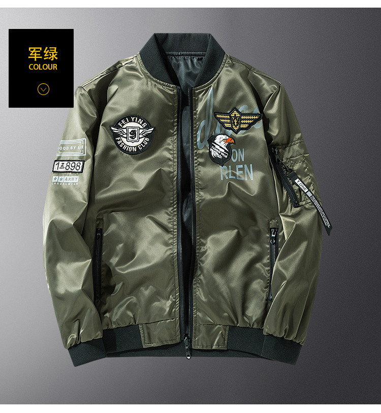 2021春季款男式外套双面穿棒球服男时尚休闲百搭棒球领飞行服 黑色 M