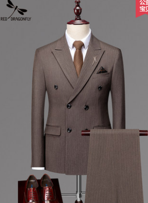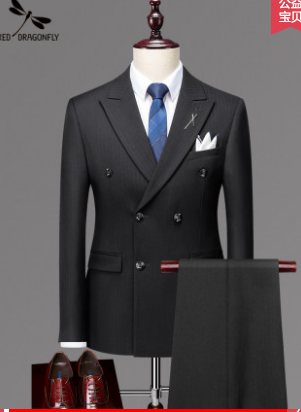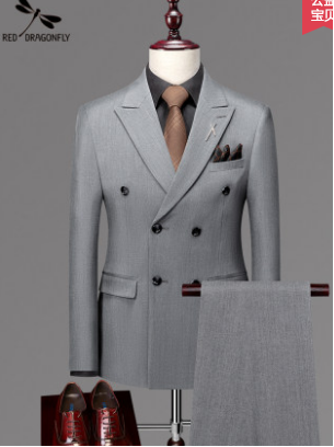 红蜻蜓西服套装男士三件套修身西装职业高端商务正装伴郎服新郎服 160 160