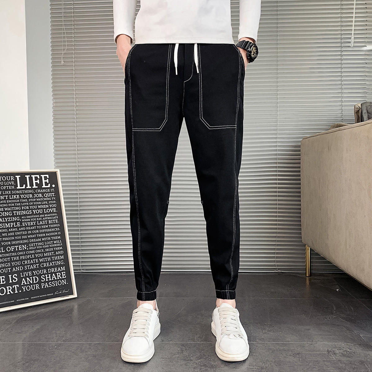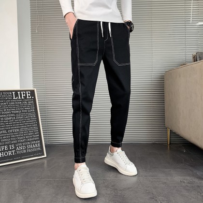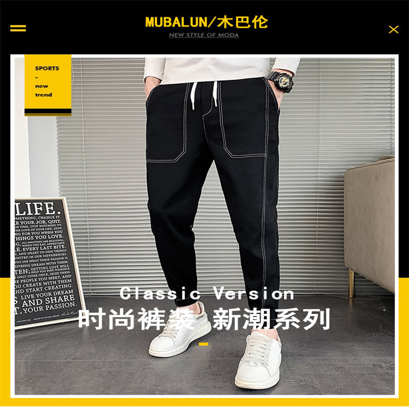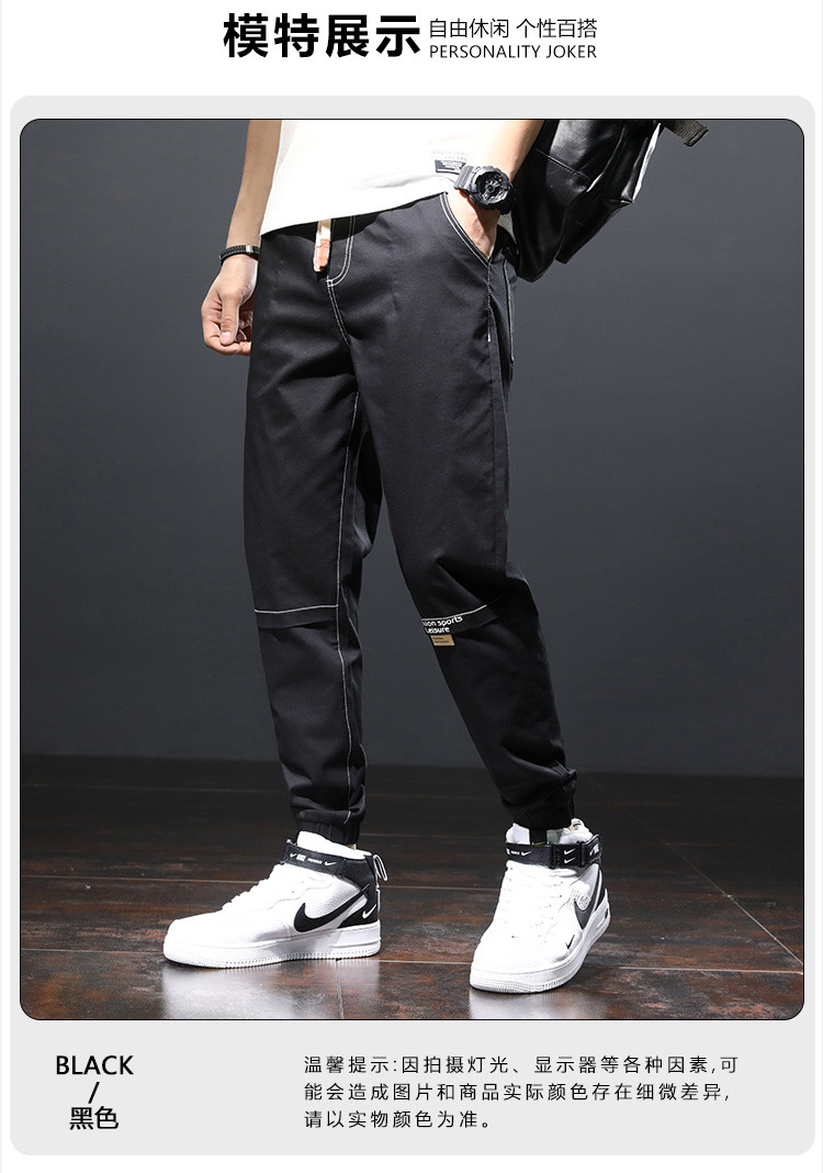 大码男装潮牌新品男士休闲裤春季双色拼接腿脚收口加肥加大男裤