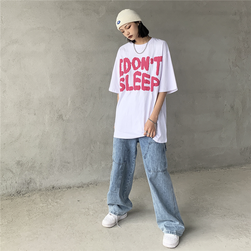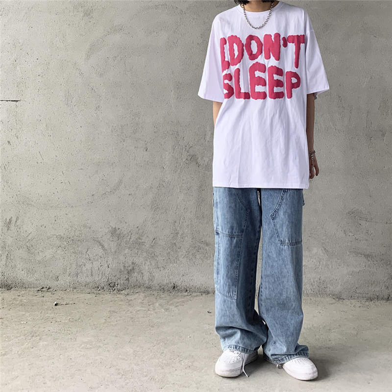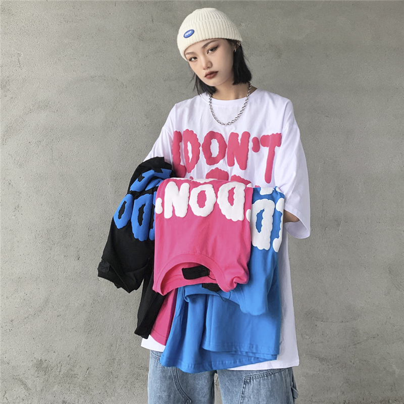 7A/原创 夏季新款发泡字母印花短袖T恤男女情侣ins街头宽松上衣潮