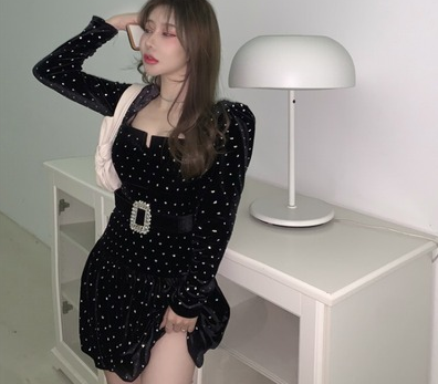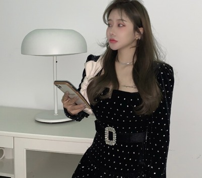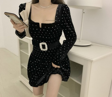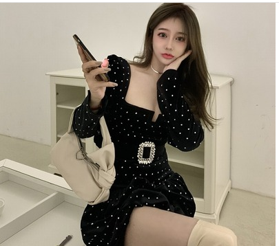 法式黑裙赫本2021年新款气质收腰显瘦性感短款方领小个子连衣裙女
