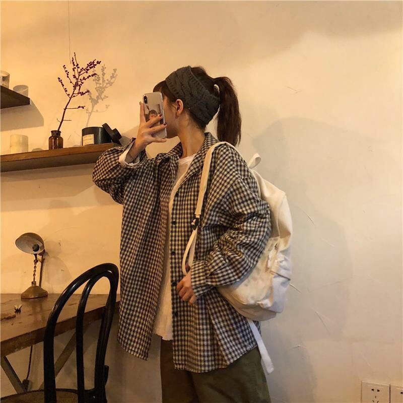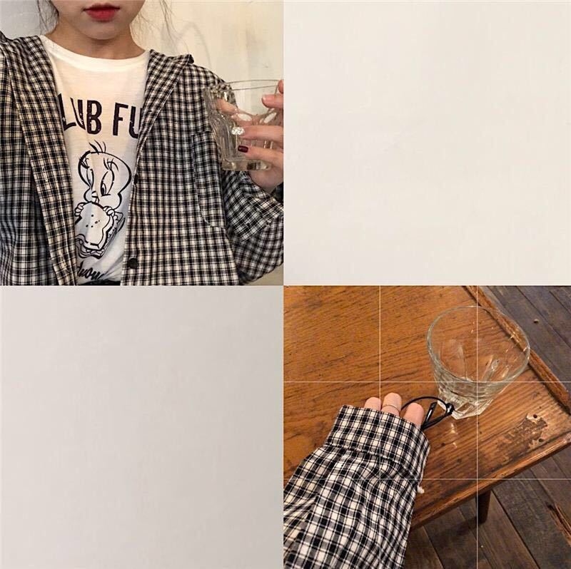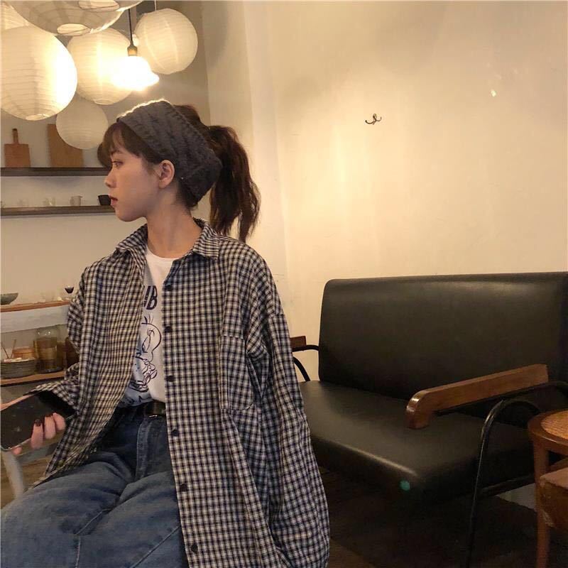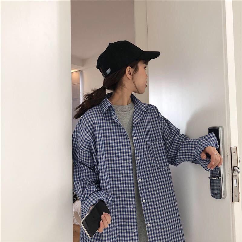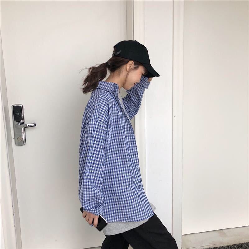 夏季港味学院风格子衬衫女学生新款韩版宽松百搭长袖开衫衬衣外套