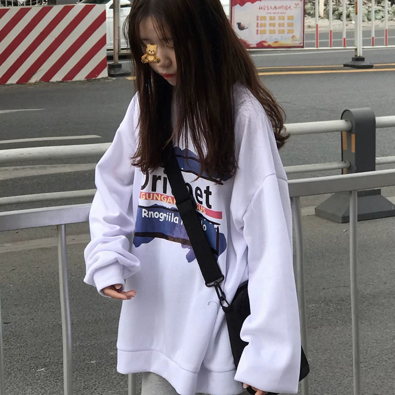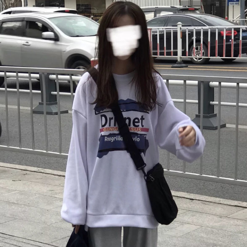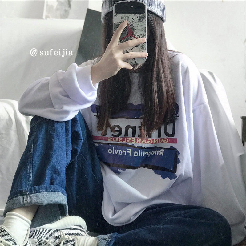 春季韩版学院风宽松长袖t恤衫女白色上衣打底衫学生ins秋衣外穿潮