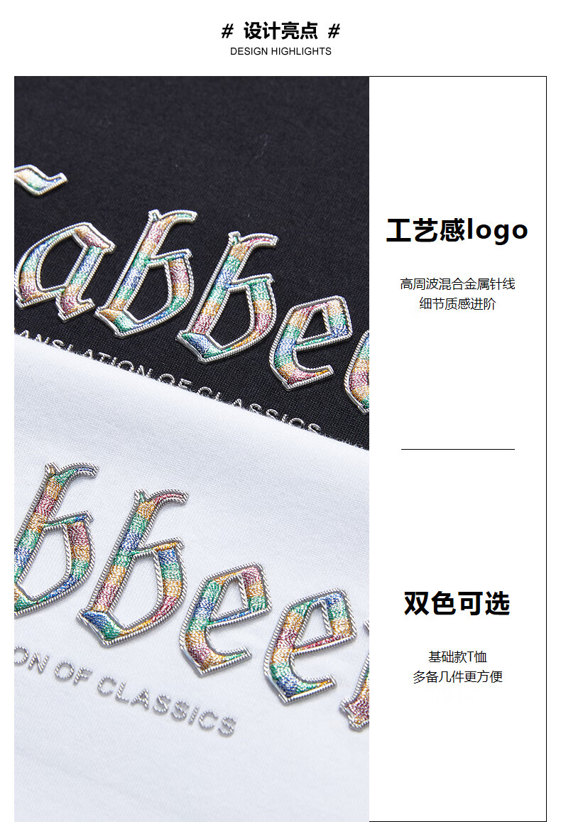 品牌logo字母展现率性的酷感风格,就是我们的态度表达;高周波工艺带出立体质感,彩色的金属感印花丰富观感。