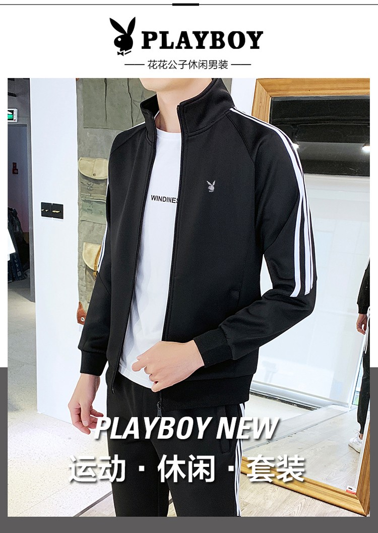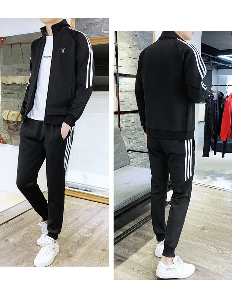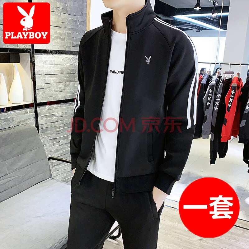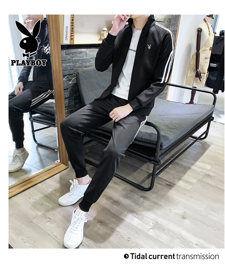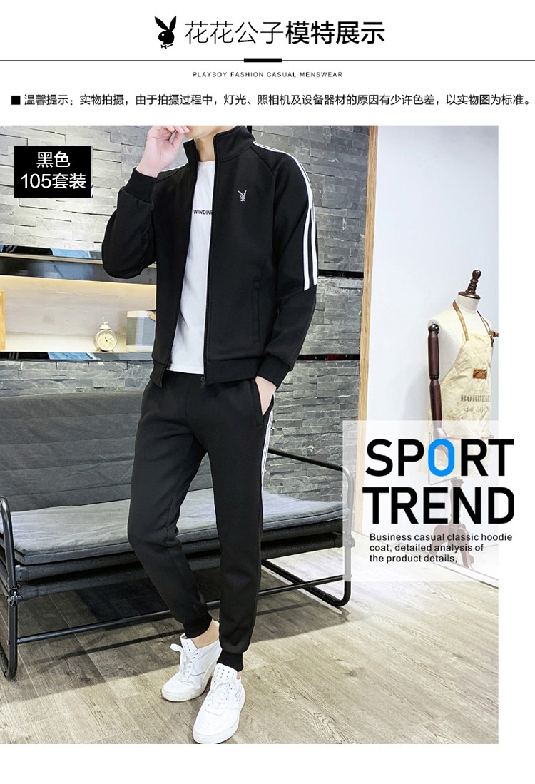 商品名称:花花公子卫衣套装男新款韩版开衫上衣裤子年潮流两件套跑步健身服 105TZ黑色 XL