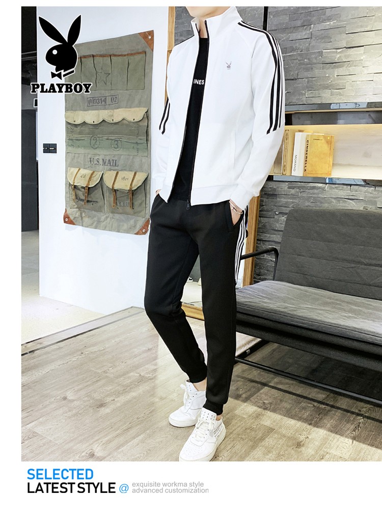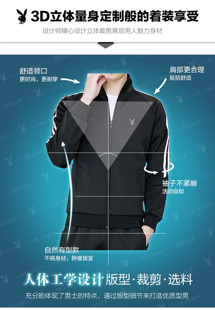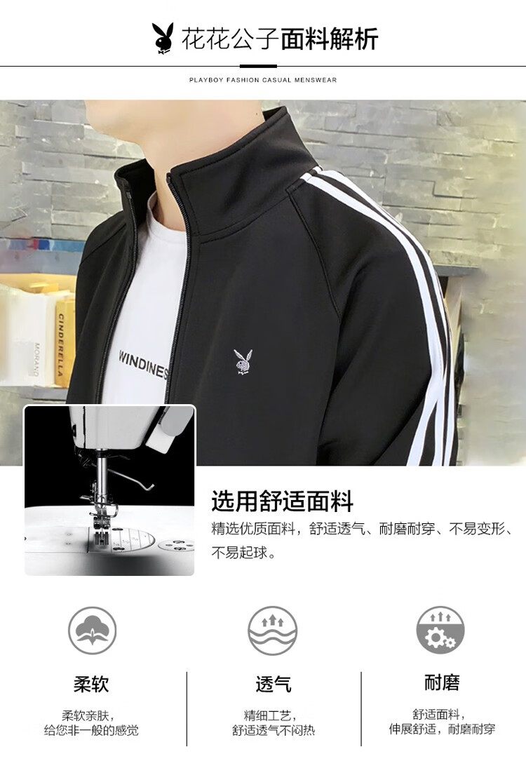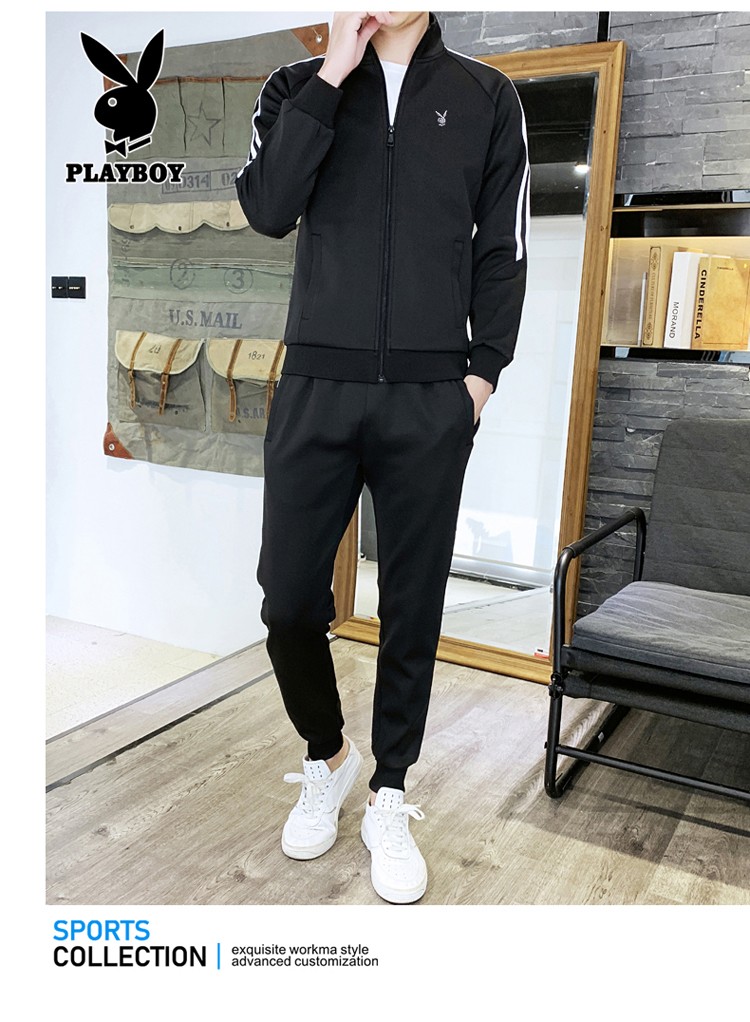 商品名称:花花公子卫衣套装男新款韩版开衫上衣裤子年潮流两件套跑步健身服 105TZ黑色 XL