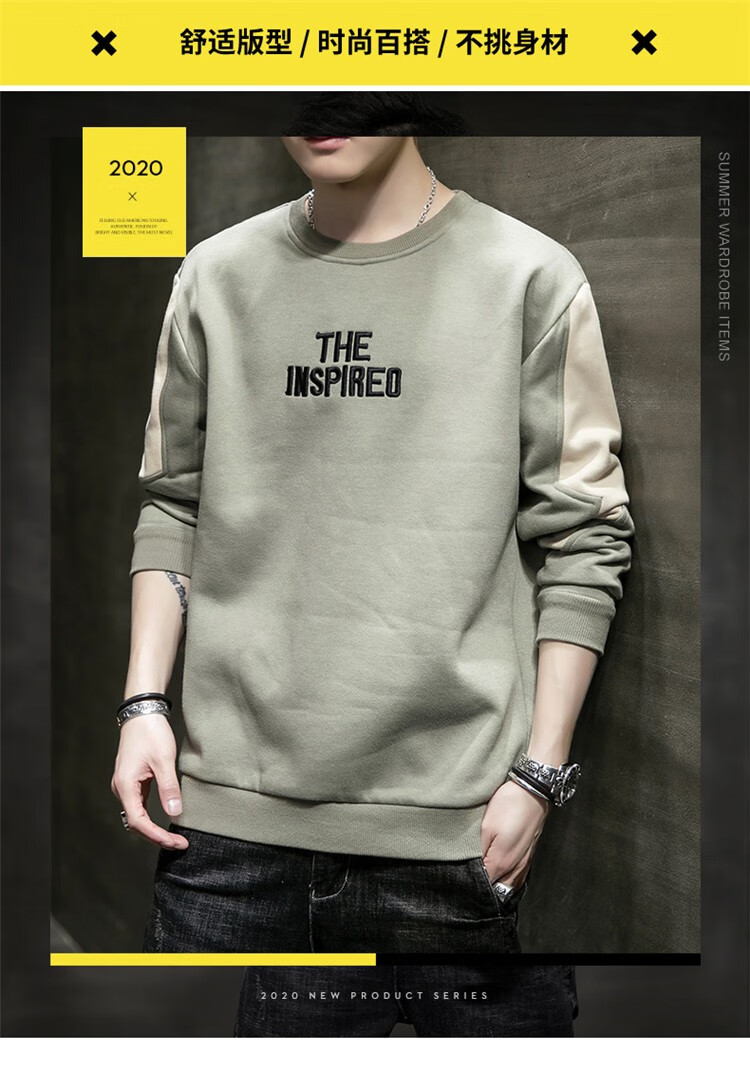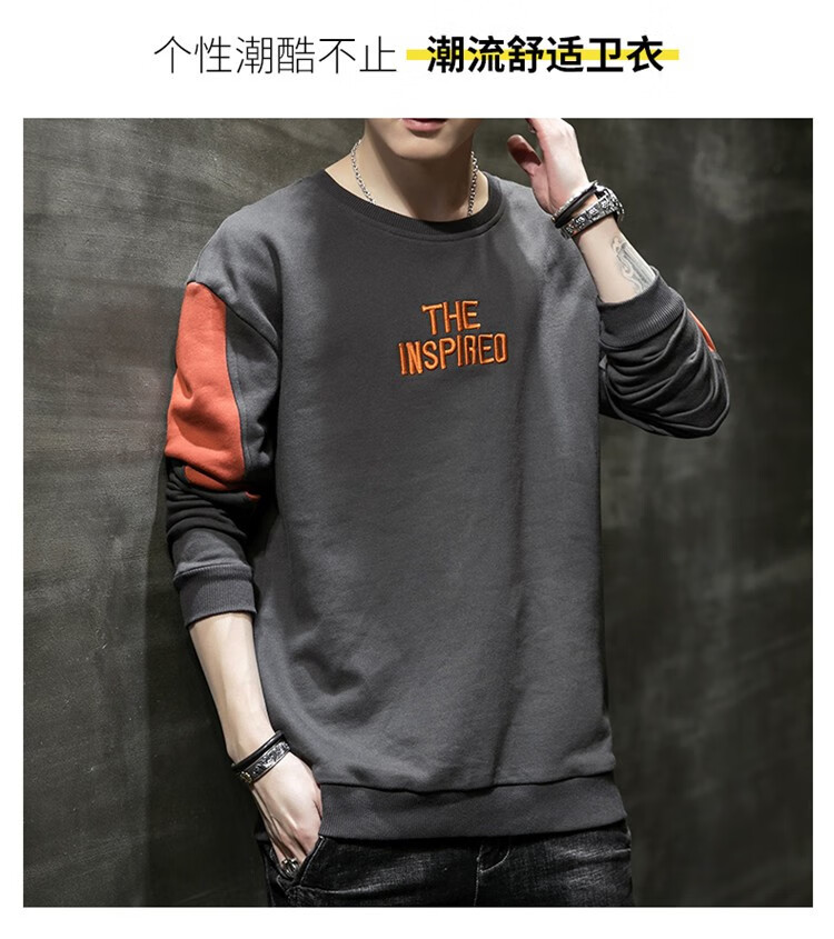 商品名称:南极人卫衣男宽松春季新款男士圆领套头衫拼接休闲长袖卫衣潮流字母刺绣长袖T恤百搭服饰上衣潮牌男装衣服男 9937 深灰色 XL