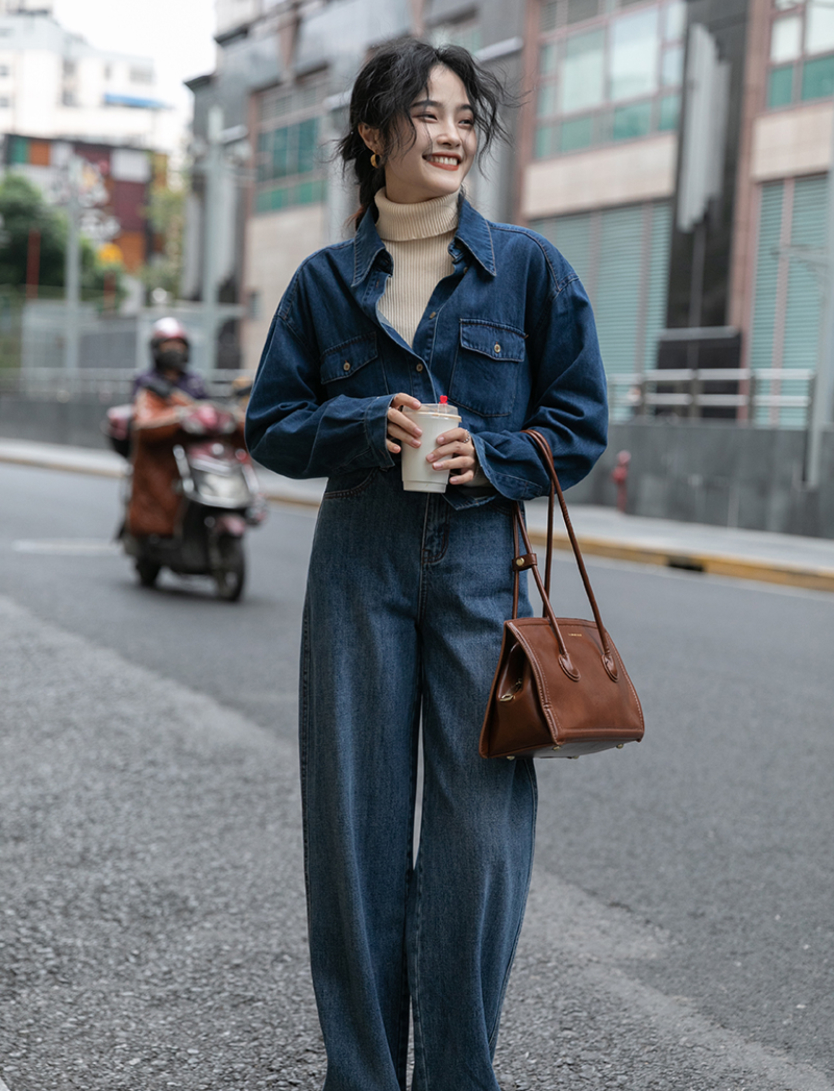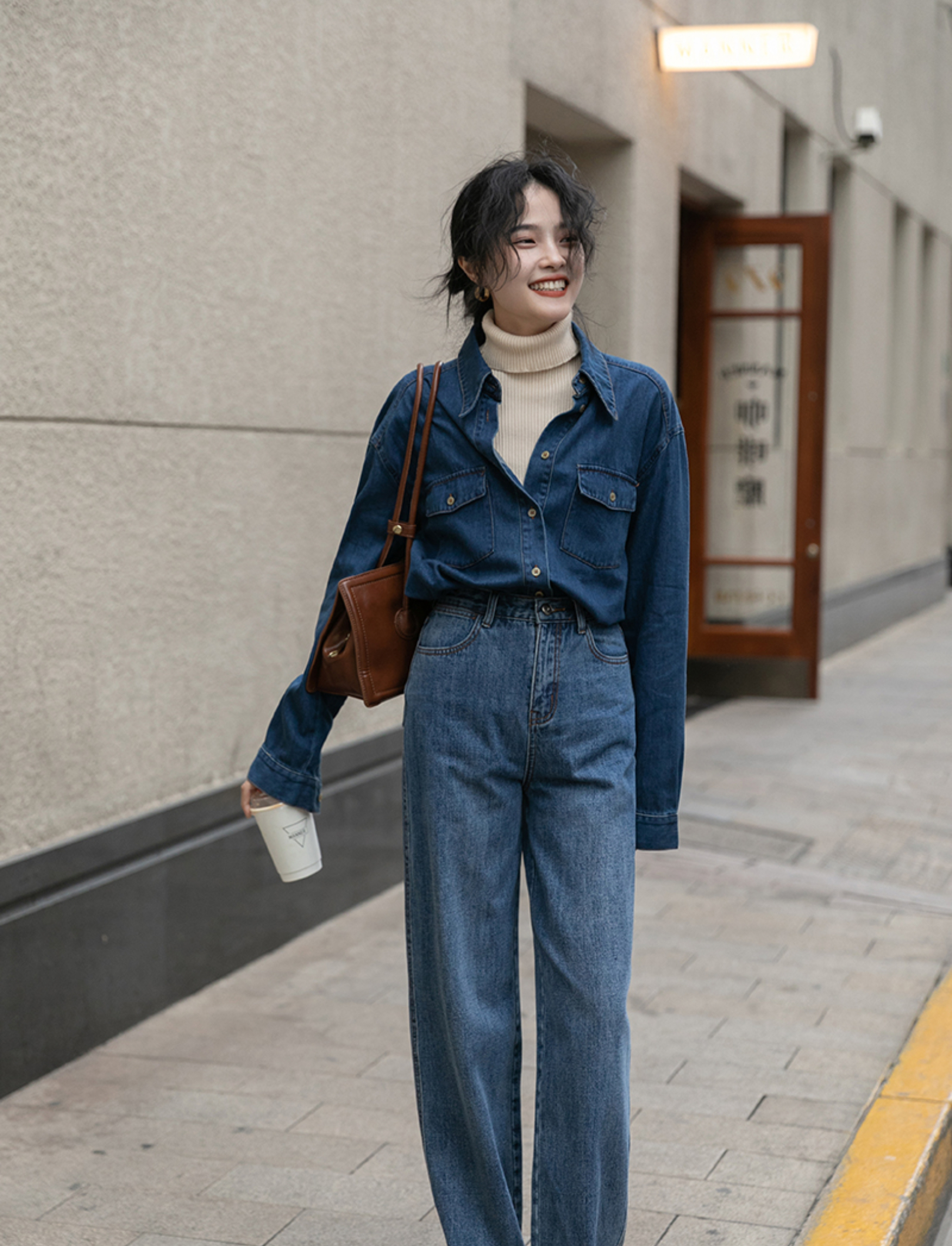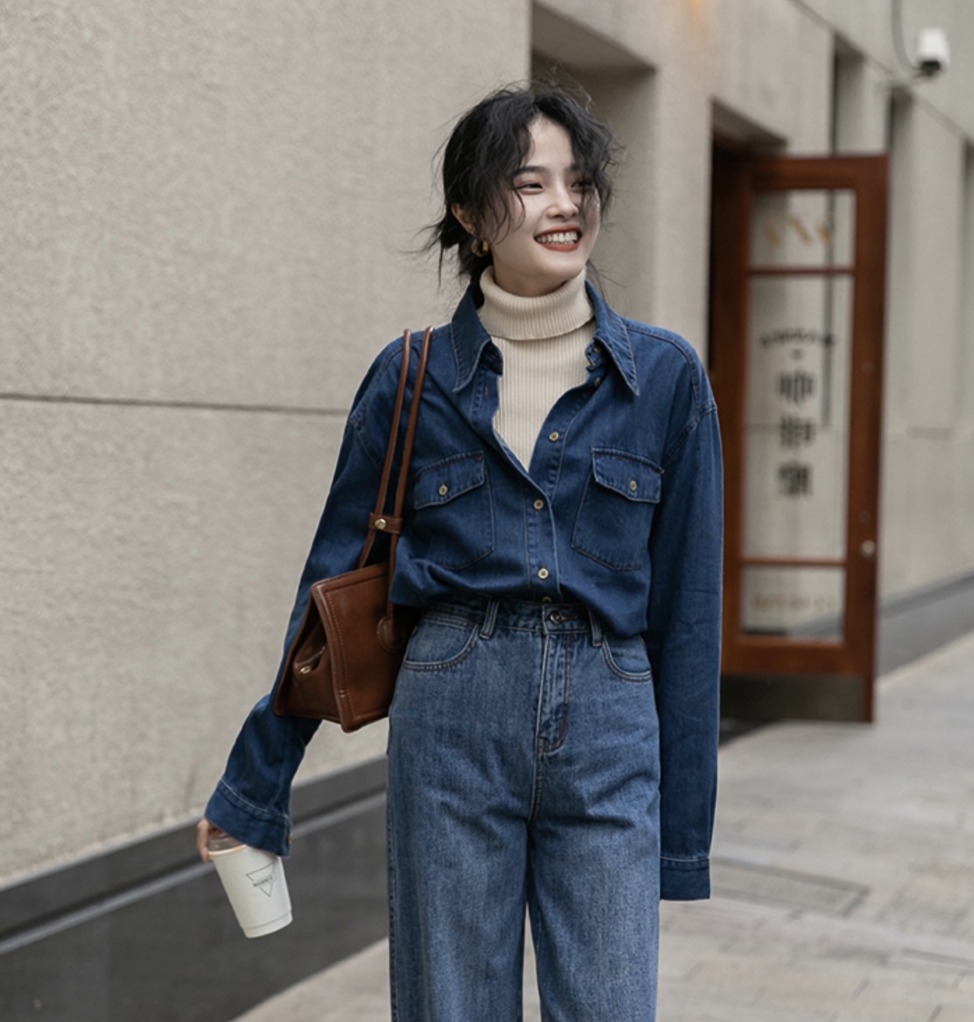 深牛仔蓝让整体气质偏向内敛气质有点复古韵味