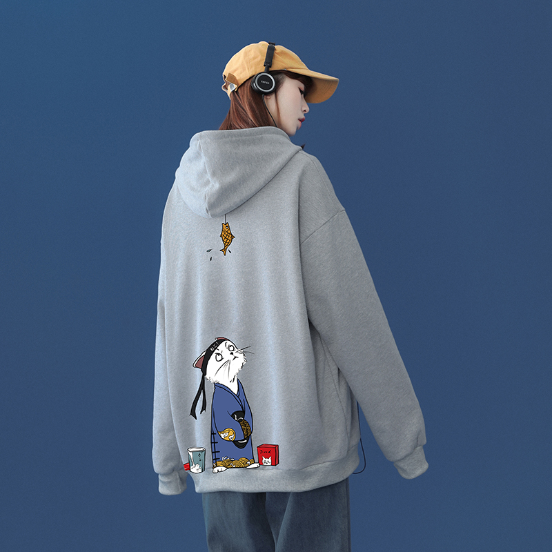 WY2014-P40 纯棉连帽卫衣女大码运动帽衫宽松薄外套女