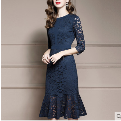 颜色分类: 蓝色袖型: 其他 组合形式: 单件 货号: M21S13941 裙型: A字裙 年份季节: 2021年春季 袖长: 七分袖 裙长: 中长裙