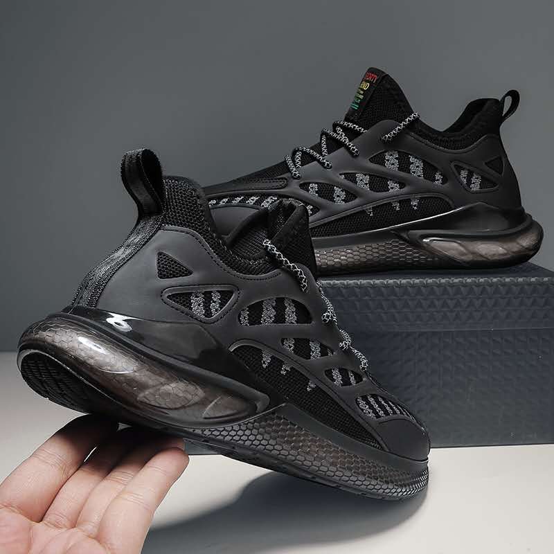 运动鞋男夏季2021新款透气轻便男士跑步鞋黑色网面休闲鞋子男