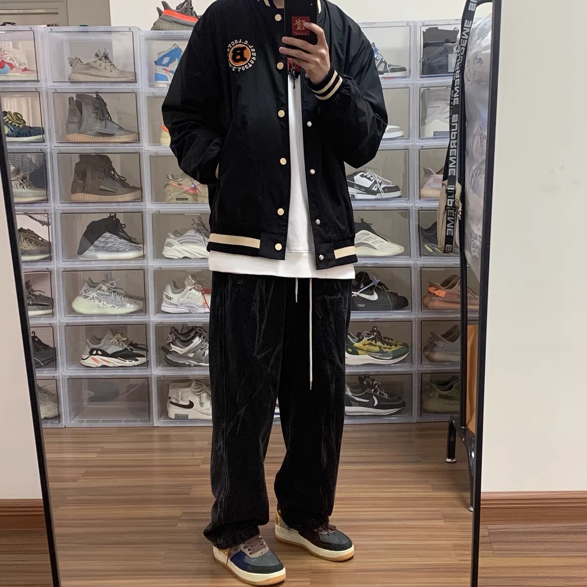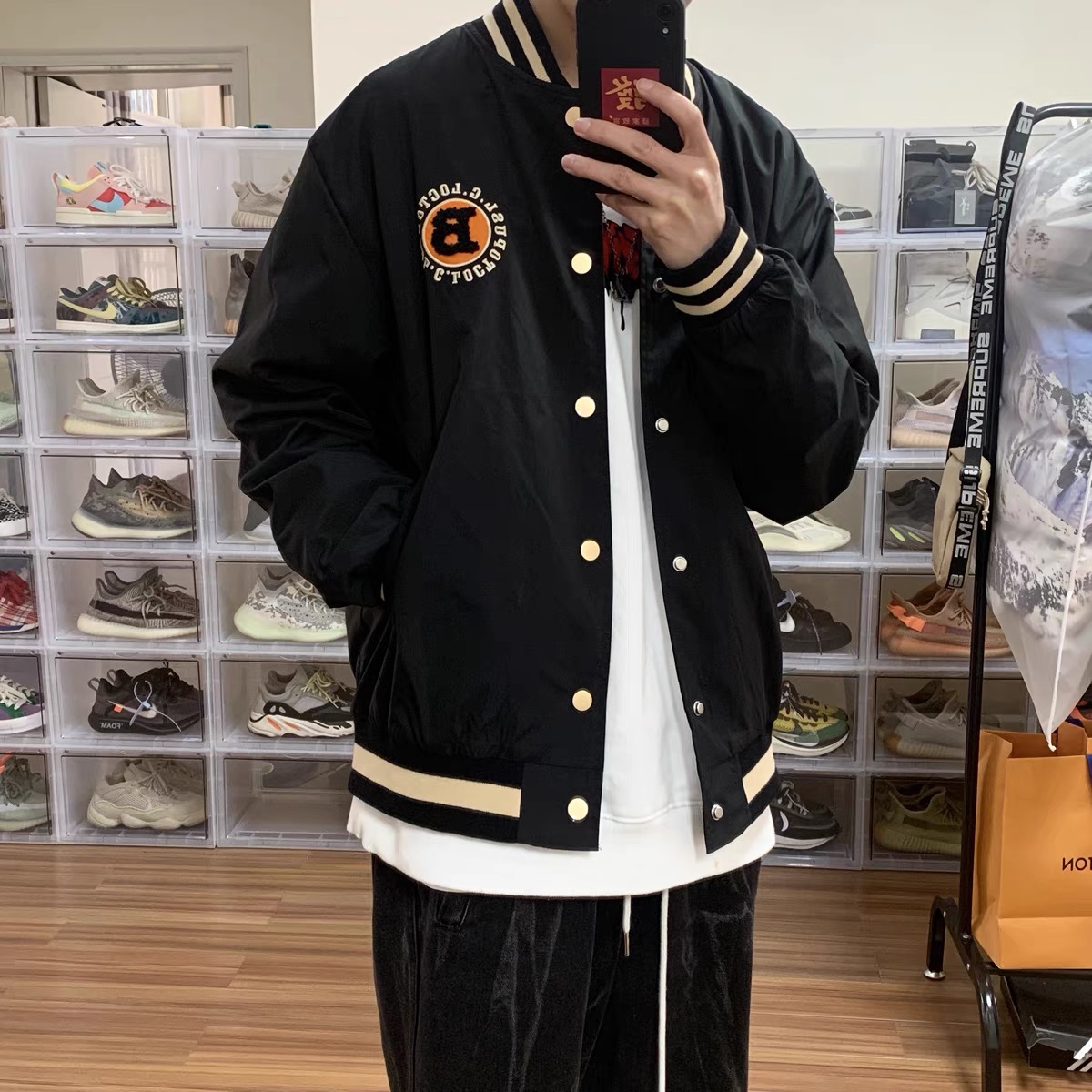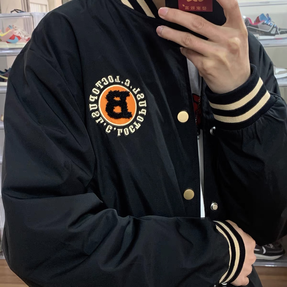 新款刺绣圆圈棒球外套宽松男女 黑色 XXL