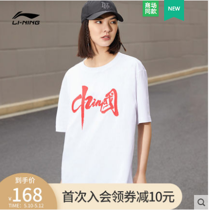 李宁短袖男2021夏季新款中国china情侣同款T恤圆领宽松运动上衣女